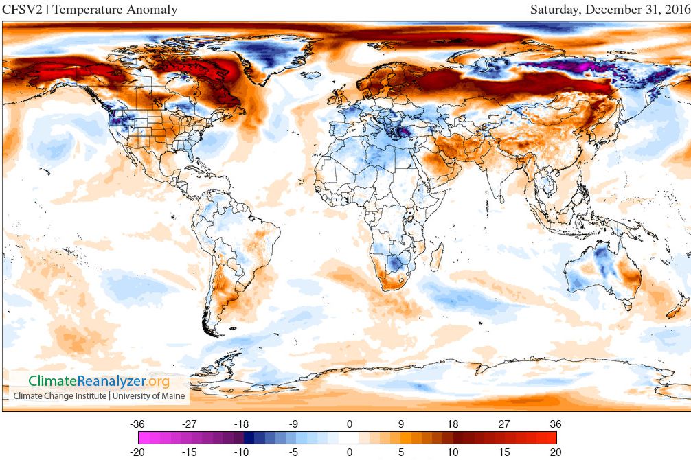 Temperatur, avvikelse från det normala 31/12 2016, ett exempel på alla de klimatdata och visualiseringar som finns tillgängliga på nätet.