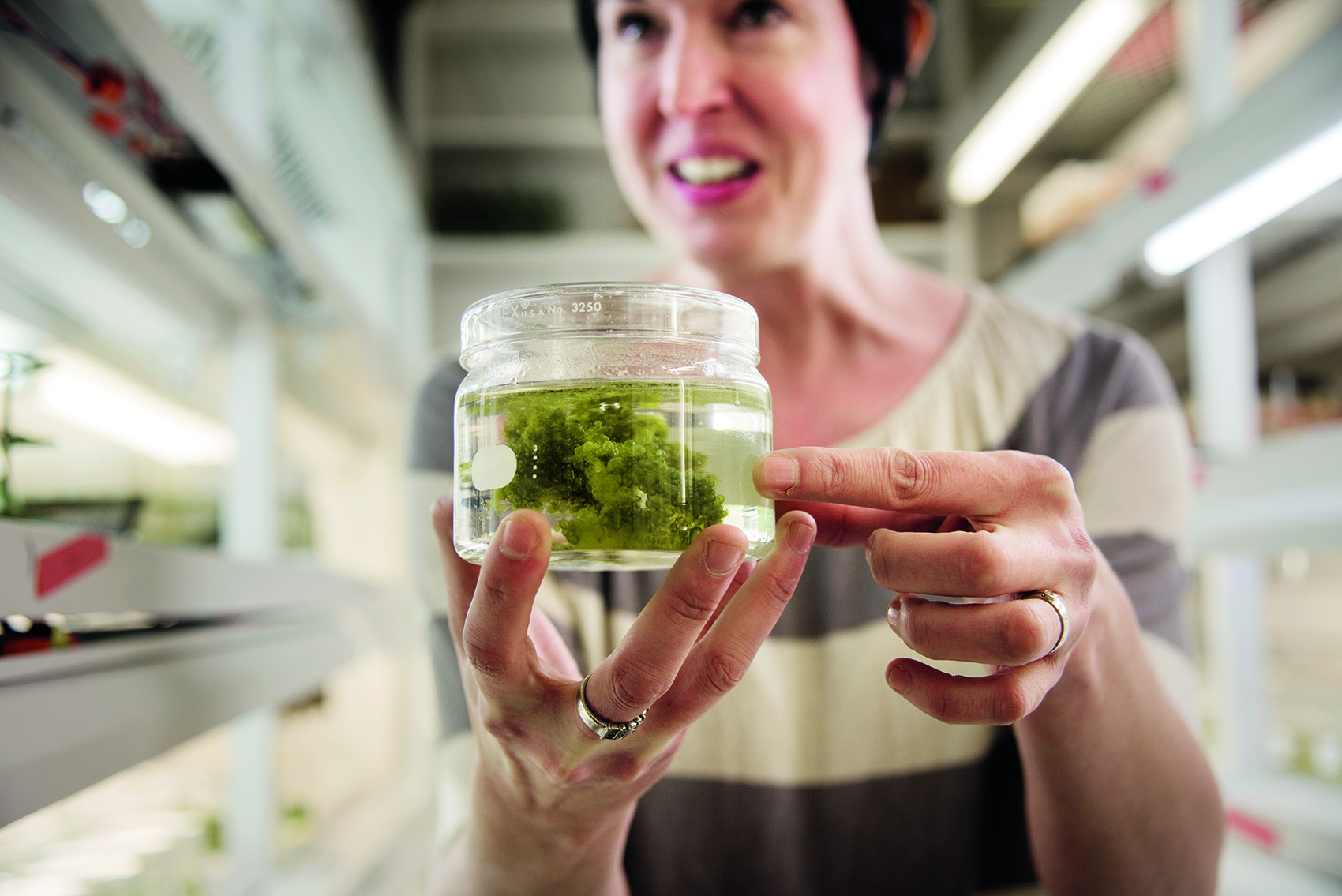 Doktor Schonna Manning med en av de makroalger som odlas på University of Texas.