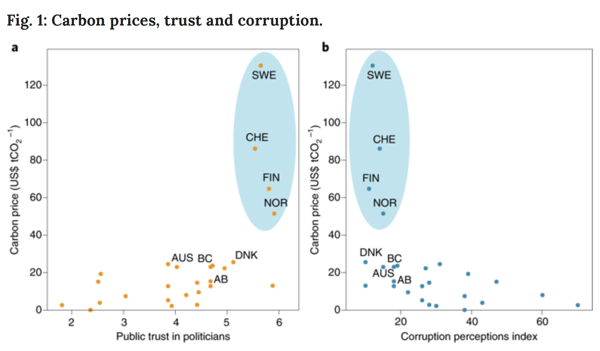 Forskarna pekar på flera studier som visar svårigheterna med att införa miljöskatter och klimatpolitiska krav i länder med lågt politiskt förtroende. I dessa länder är också företagen, som motsätter sig skatter och krav, ofta starkare i förhållande till politikerna.