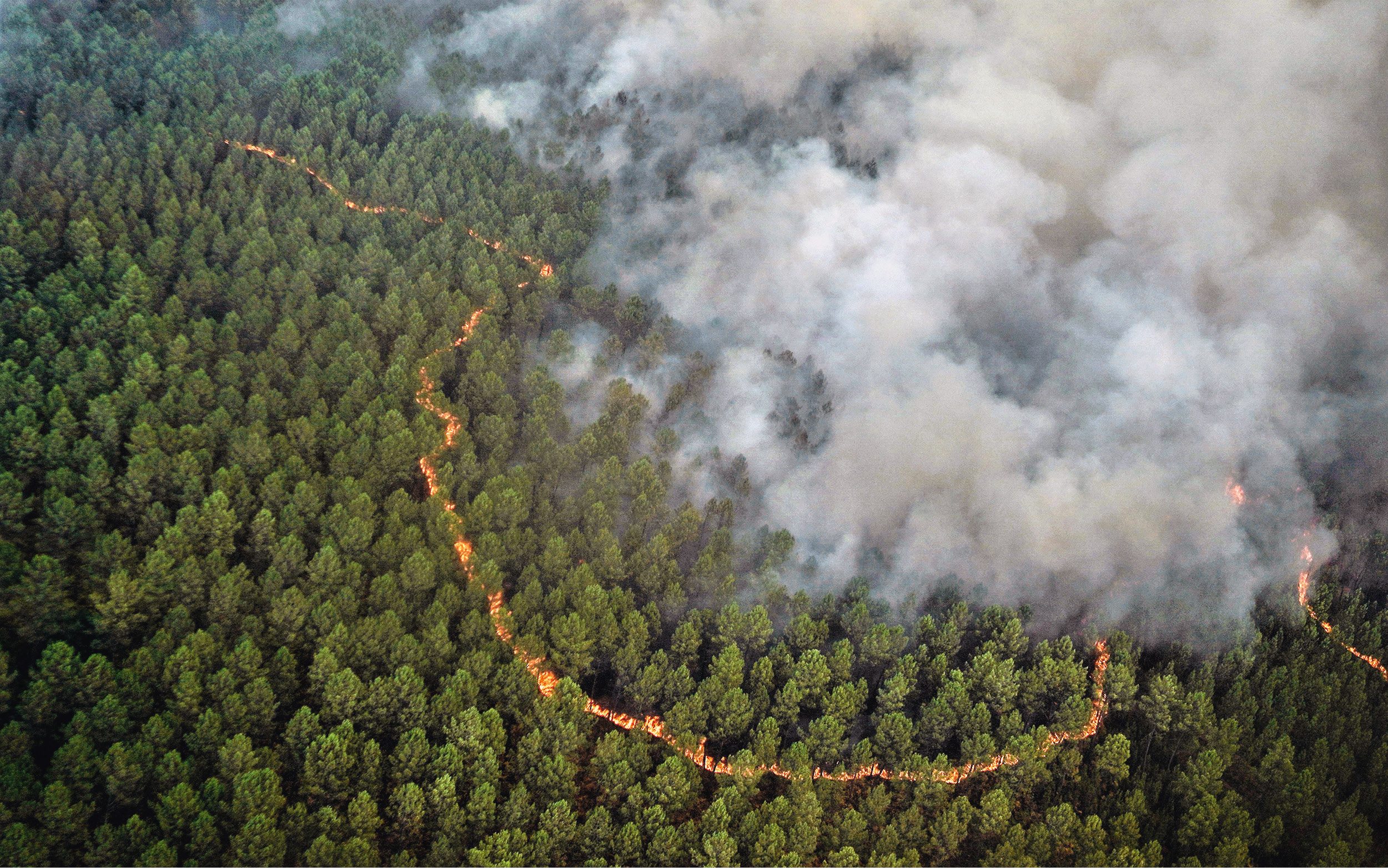 Knappt två månader efter brandinfernot vid La-Teste-de-Buch startade en så kallad megabrand vid Landiras några mil österut. Temperaturen låg på 40 grader, det var knastertorrt i de torviga markerna och vinden tilltog. En bra grogrund för en gnista att växa till ett stort slukande eldmonster i den skog som anlades av människan på 1800-talet.