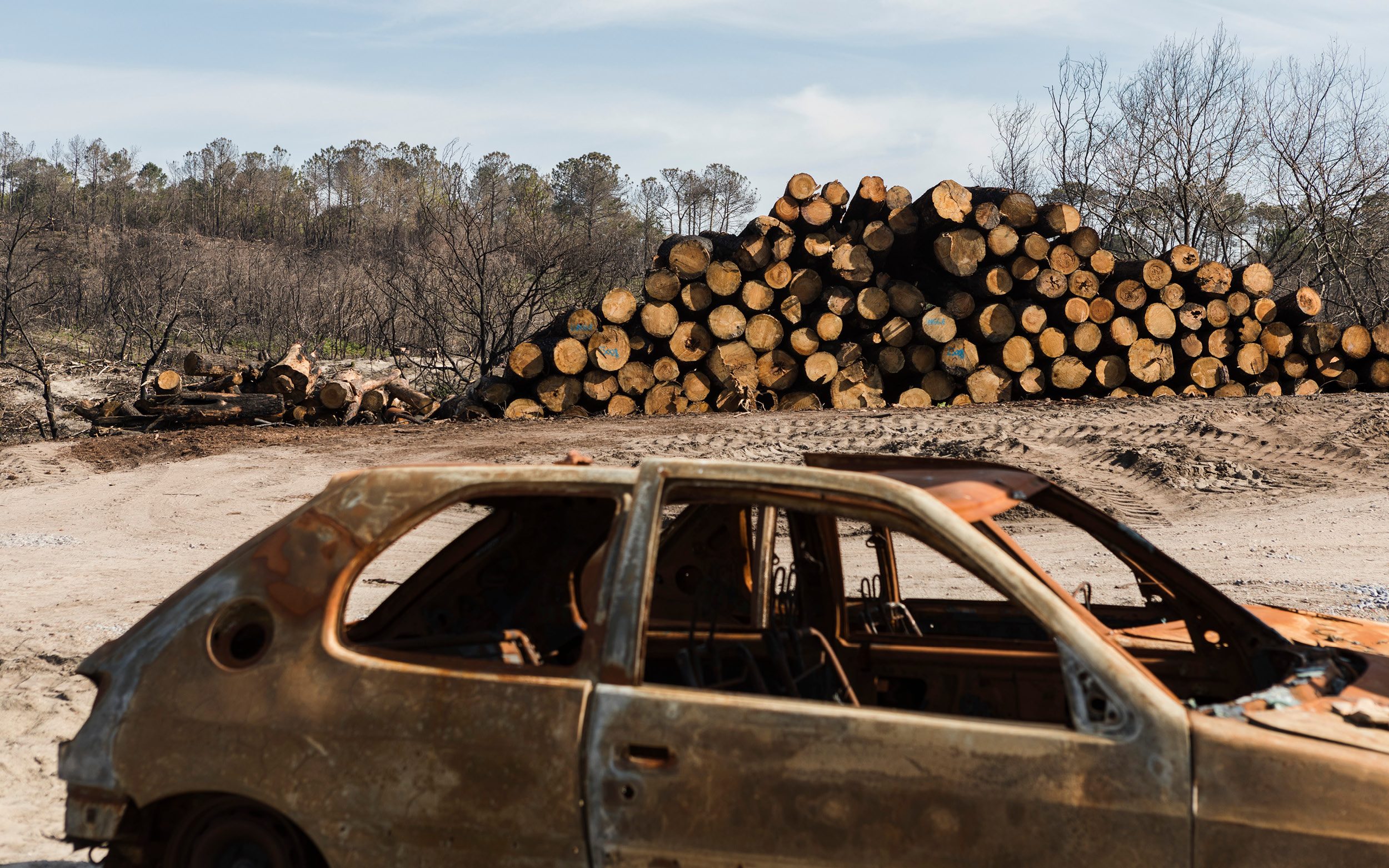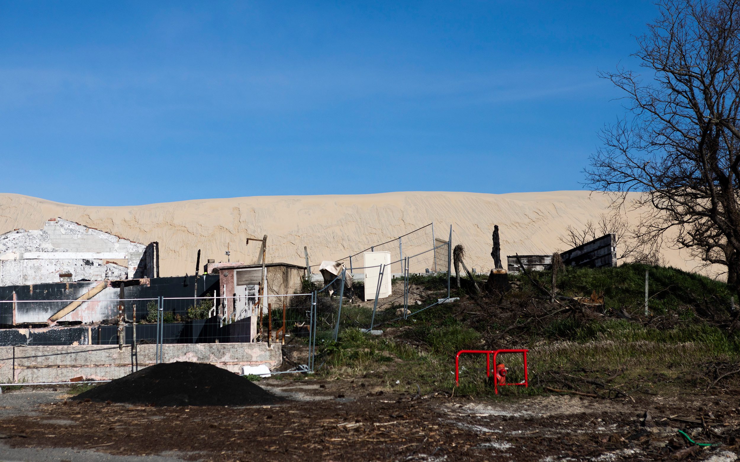 Området kan närmast beskrivas som en krigsskådeplats. Majoriteten av den omgivande tallskogen har gått upp i rök, med undantag för de svartspretiga trädskelett som sticker upp ur den askgrå sanden. På slagfältet mellan människan och naturen blir det tydligt att alla är förlorare.