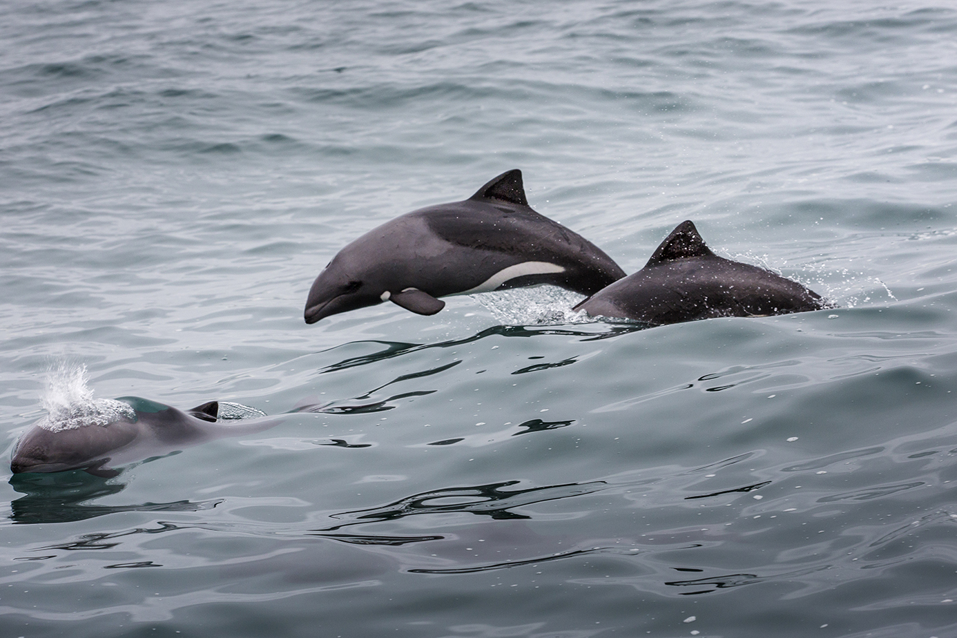Medan fartyget stävar ut mot öppet hav leker bengueladelfinerna kring fören. Simmar längs med skrovet i grupper om tre eller fyra. Kastar sig upp i luften och in i vågorna som bryts.