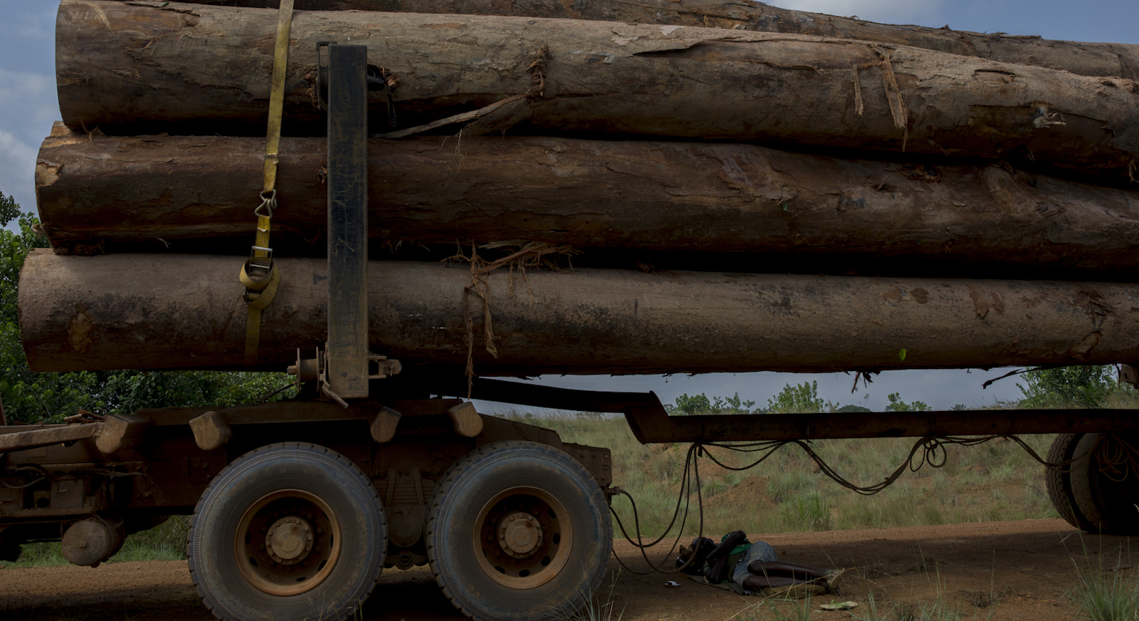 En lastbilschaufför sover middag under sitt släpp som är lastat med “hard wood” från en närliggande djungel. FOTO: Jonas Gratzer