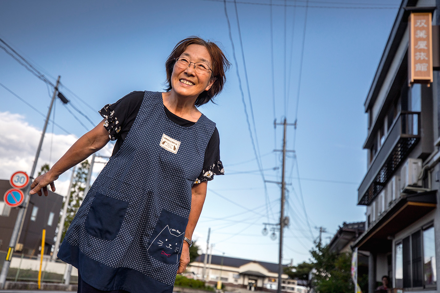 omoko Kobayashi på den folktomma gatan i Odaka.
