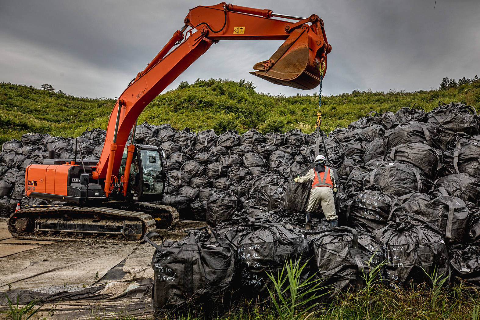 De säckar han talar om innehåller radioaktiv jord och kantar Fukushimas vägar i tusental. Jorden ska saneras på den massiva mellanlagringsanläggning som statliga Jesco öppnat, men vad som väntar är ett sisyfosarbete.