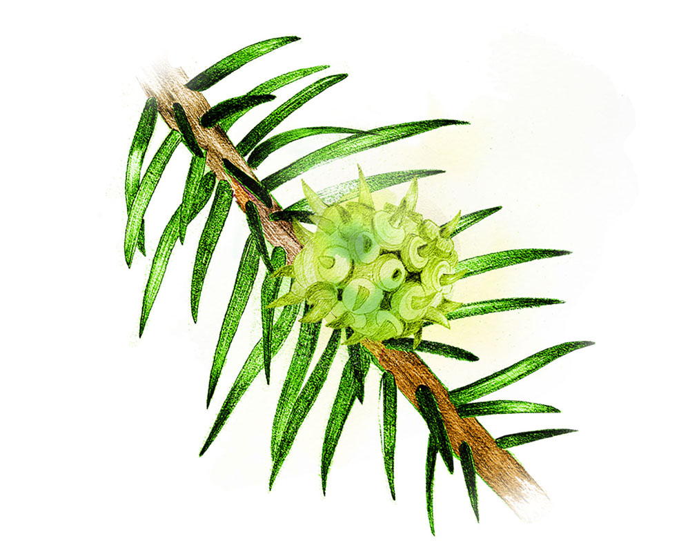 Du behöver sällan gå så långt för att hitta en ananasgall. På tunna grangrenar sitter ananaslika bollar, stora som körsbär. Här har en mindre granbarrlus lagt sina ägg. Bladlushonan suger saft ur barren om våren och lägger sedan sina ägg där barren sitter fast i grenen. Härifrån växer de taggiga små bostäderna ut, där de unga bladlössen lever tills de flyger ut genom en springa på sensommaren. Den övergivna ”ananasen” sitter kvar i flera år.