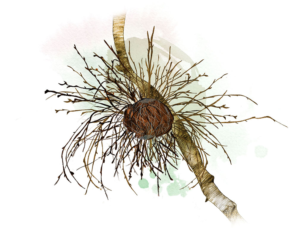 En blånadssvamp som lever inuti björkar kan utsöndra ämnen som väcker trädens slumrande knoppar. De börjar växa och bildar abnormt förgrenade, täta skott, där svampens mycel övervintrar. Ofta syns många stora sådana här ”häxkvastar” i björkar. Även gallkvalster, rostsvampar och genetiska mutationer kan skapa häxkvastar på olika träd.