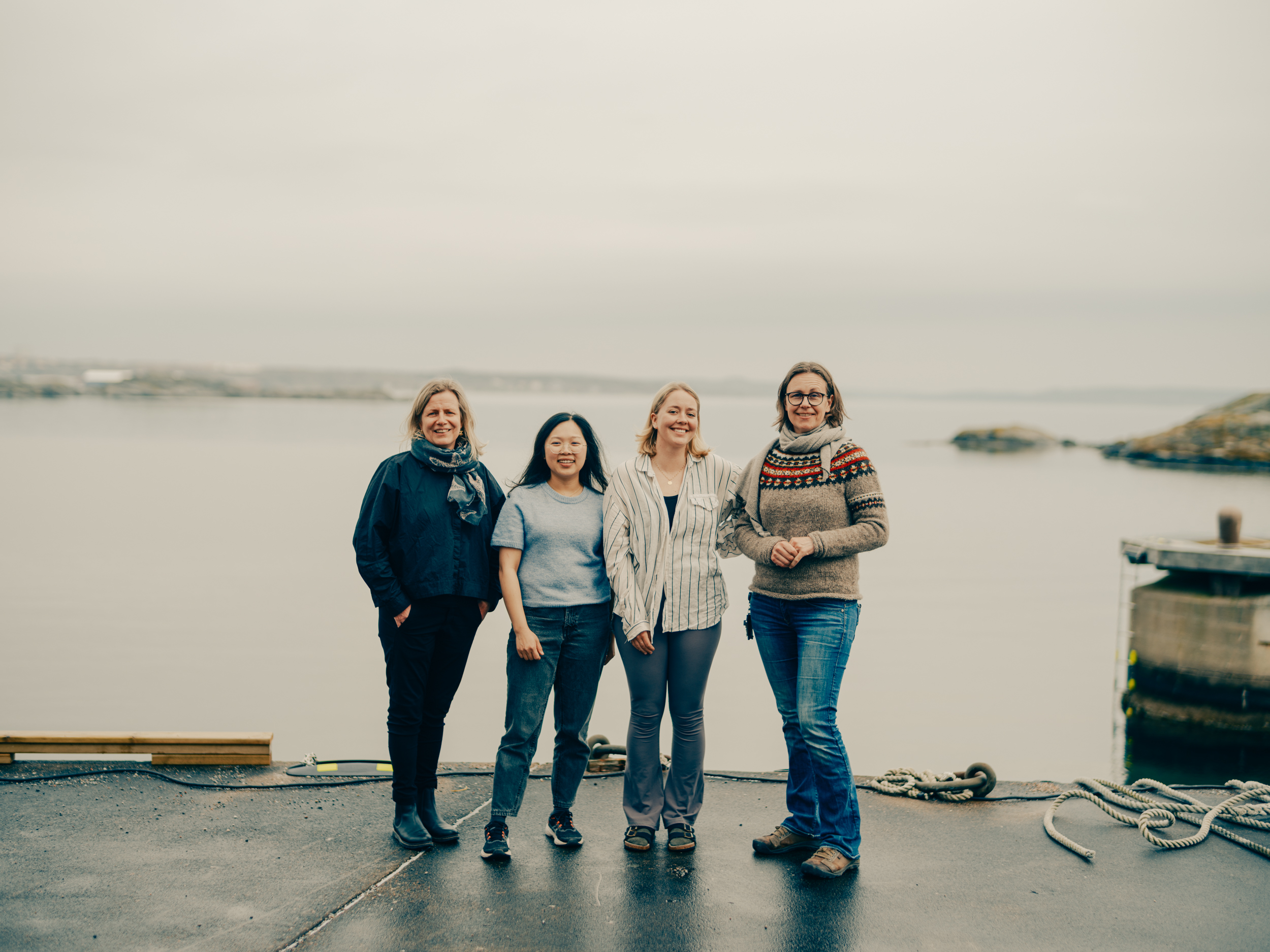 Närhet till havet och samarbete mellan olika forskargrupper och företag gör miljön vid forksningscentret speciell. Från vänster Maria Granberg och Carrie Chau Yu-Chen, IVL Svenska miljöinstitutet, Edith Aspelin och Eva-Lotta Blom, SLU.