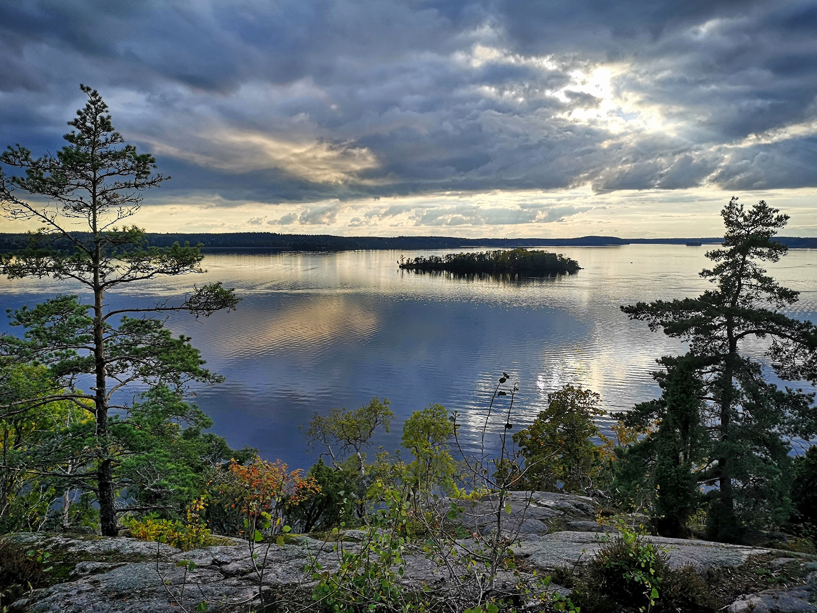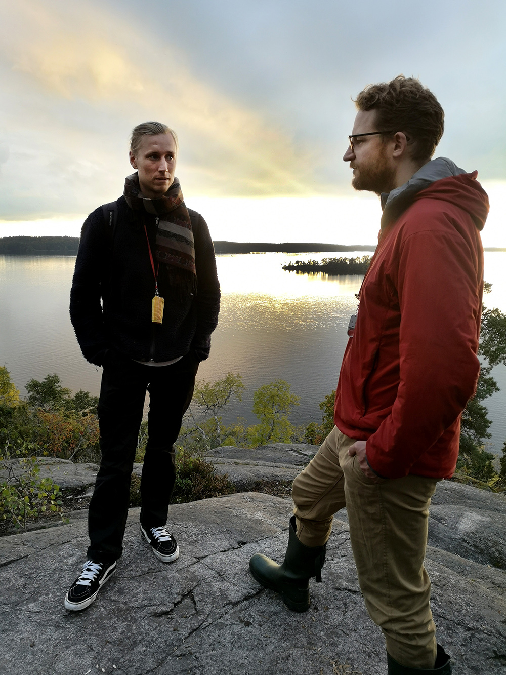 Höstsolen silar genom höga tallkronor i naturreservatet Kungshamn-Morga strax söder om Uppsala. Vi möter flera vandrare längs stigen upp till en fornborg med fin utsikt över Mälaren.