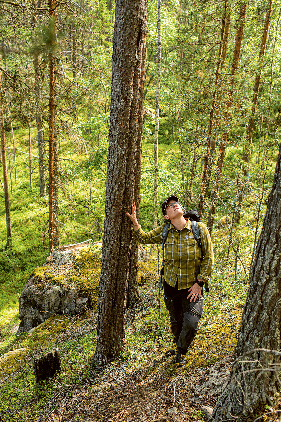 Överallt ligger små och stora block och gör att det inte är helt lätt att ta sig fram. Markerna är näringsfattiga och träden är trots sin ålder smala och inte särskilt höga.
