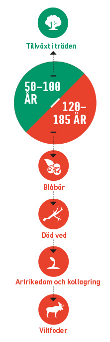 − Vi skulle behöva mer gammal skog för att få in fler värden. En idé är att bruka skogen hyggesfritt och en annan är att låta träden bli äldre innan de avverkas. Då får vi dessutom bättre kvalitet på virket.