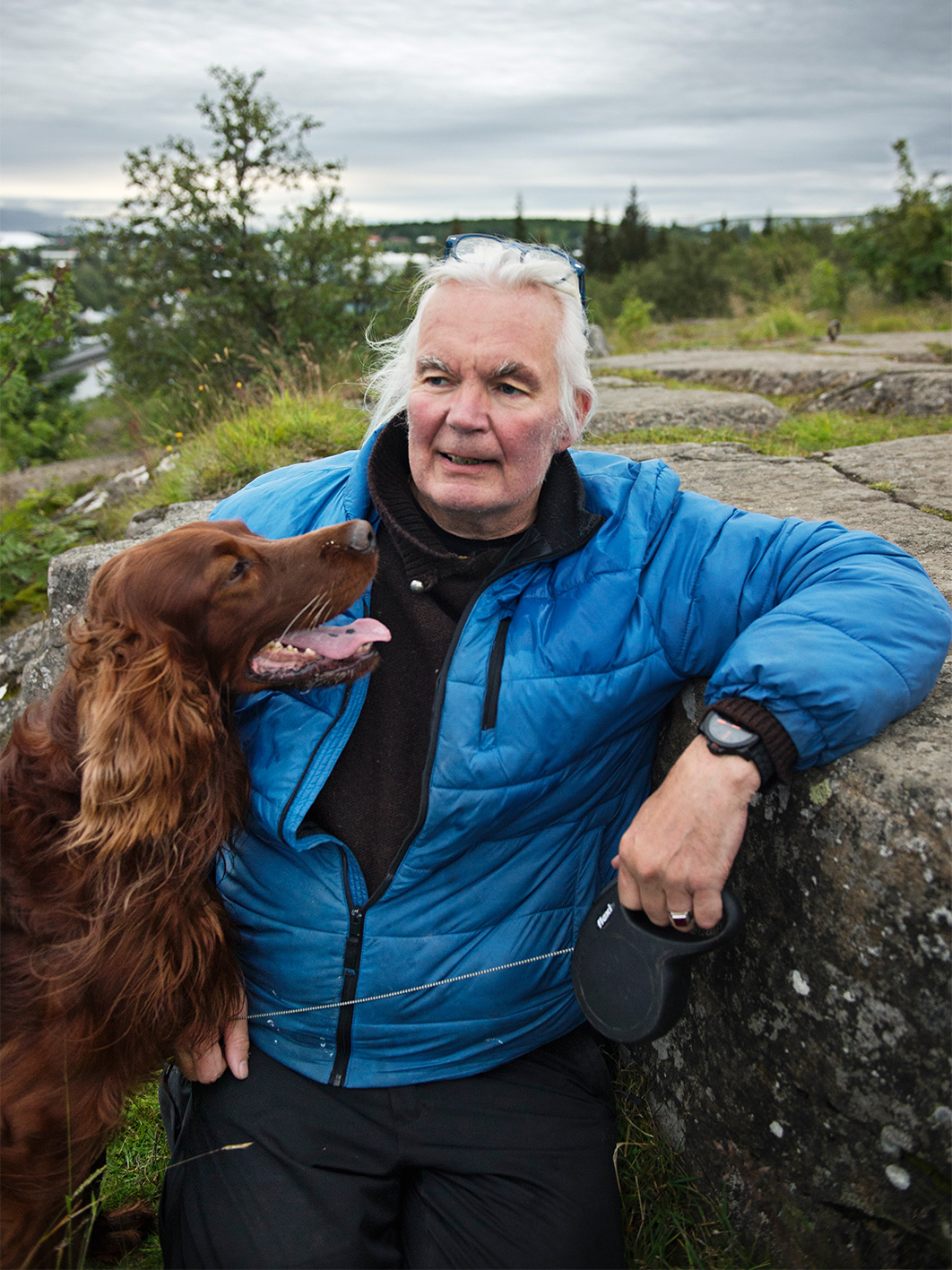 Árni Stefán Árnarson hävdar att blodtappningen bryter mot djurskyddslagar. Han har kämpat för djurens rättigheter i tretton år. Här med sin Irish setter Liam.
