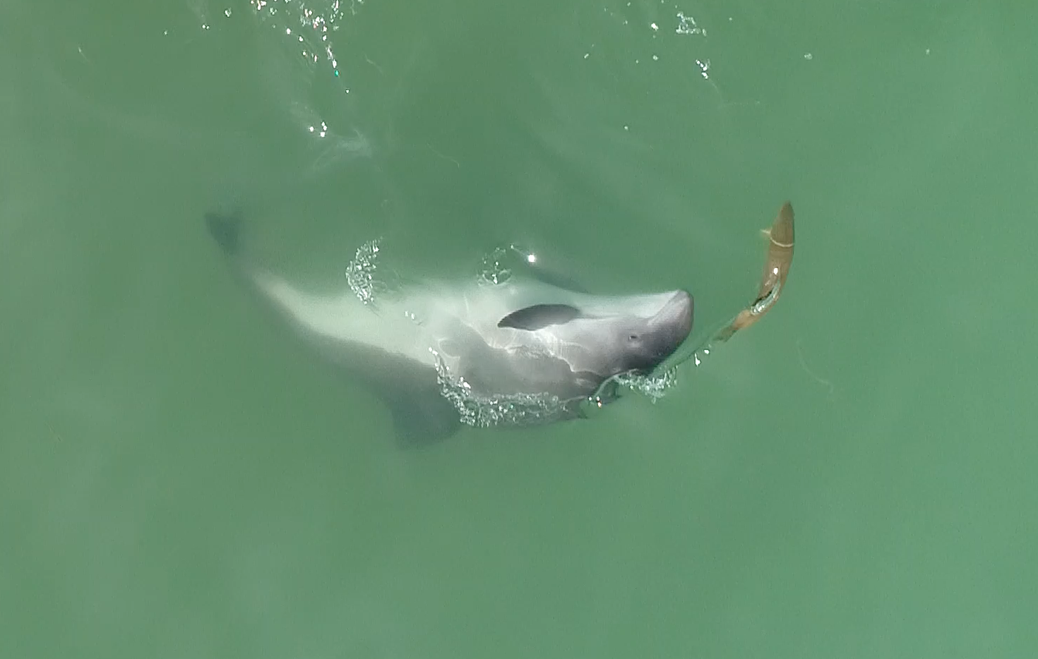 Drönarstudierna som Johanna Stedt har arbetat med tillsammans med danska forskare visar att tumlarna samarbetar mycket mer när de jagar än man tidigare har förstått.