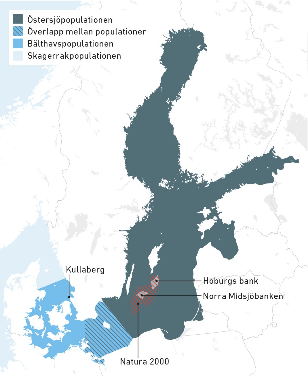 Även om de också minskat drastiskt under andra halvan av 1900-talet har tätheten varit mycket högre här i de svensk-danska sunden och Kattegatt, något som också gör det möjligt att forska på djuren här.