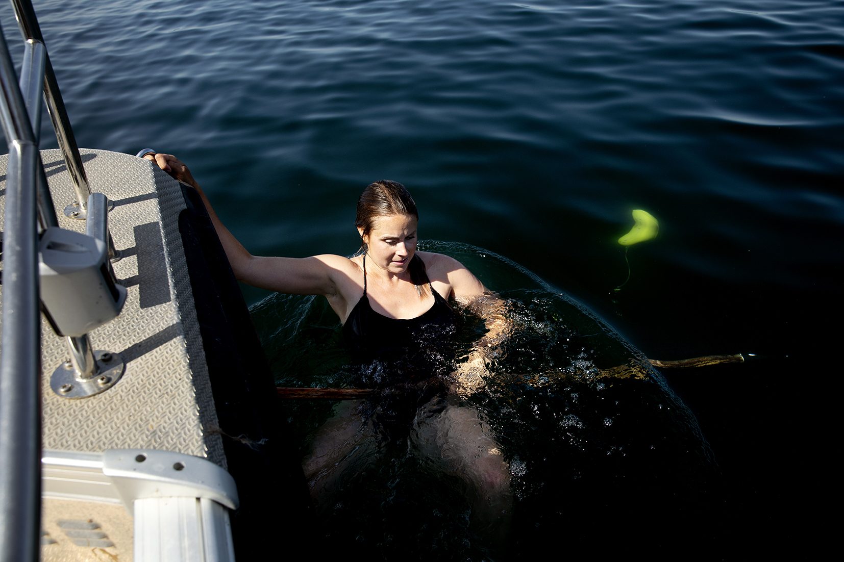 En av strömmätarna hamnar för högt upp och riskerar att bli påkörd av andra båtar. Johanna Stedt försöker plocka upp den med båtshaken men den är svår att nå. Till slut får hon hoppa i för att fånga den. Strömmen är stark och hon får kämpa för att komma upp i båten igen.