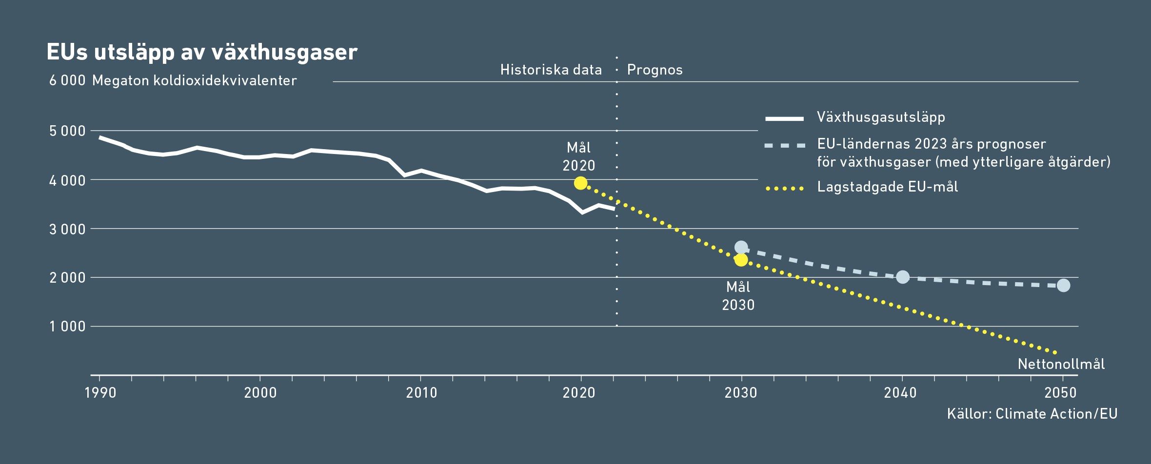 Utsläppsminskningar sedan 1990, men långt kvar till målen. Kommande Europaparlament och EU-kommission har mycket kvar att göra för att stärka klimat- och miljöarbetet i unionen. För skogen och fisken är läget akut, särskilt i Norden. Detta är vad som gäller för EU:s medlemsstater: