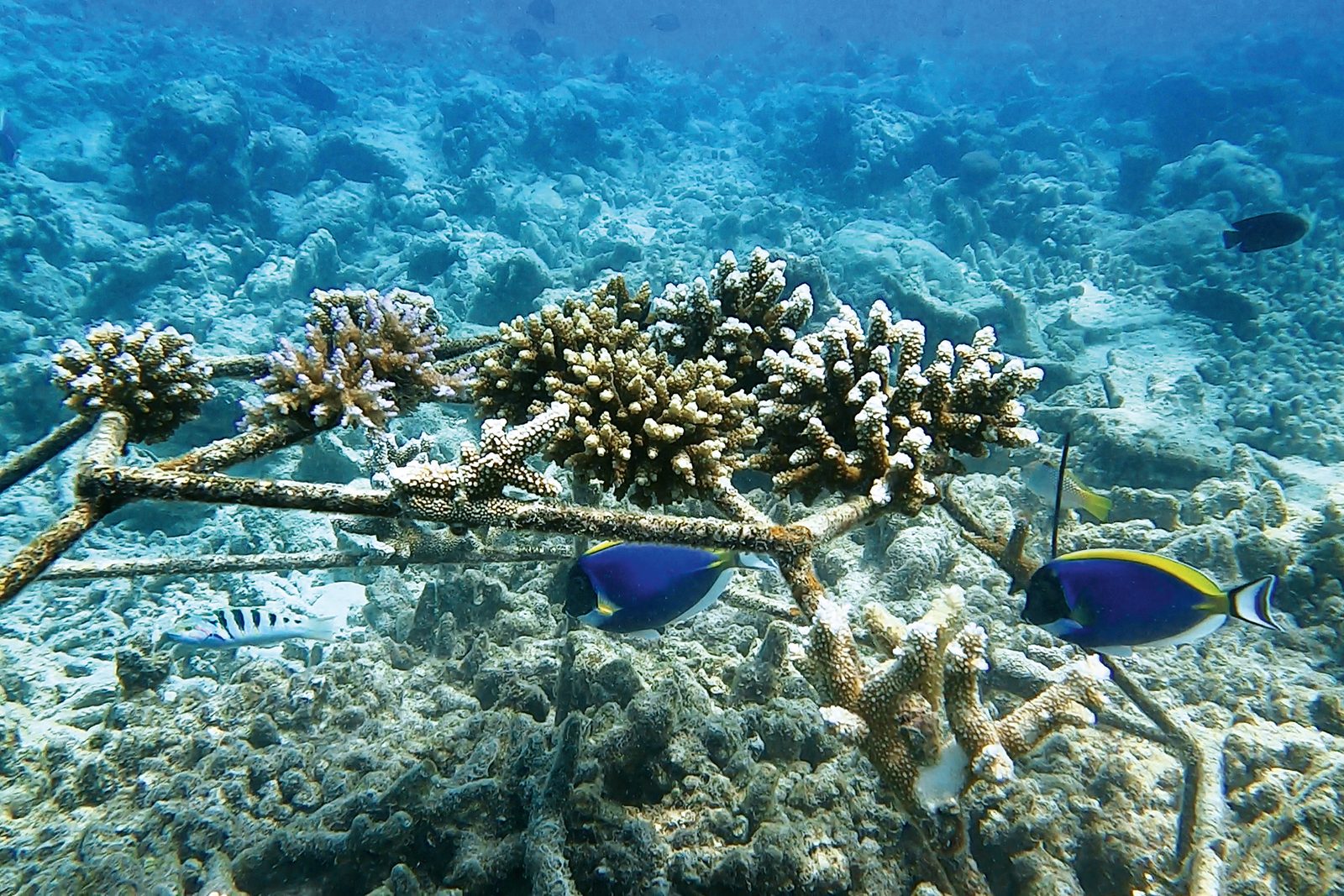 Indiska oceanens önationer är beroende av såväl fisk som turistinkomster. Marinbiologerna i Indiska oceanens övärld jobbar därför med att plantera nya koraller för att få undervattensvärlden att återhämta sig.
