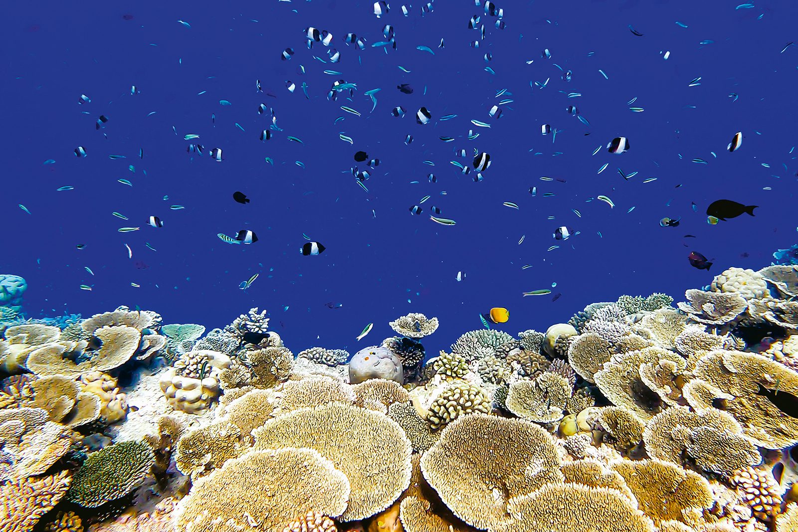 Fiskar som den vitbröstade kirurgfisken är mindre känsliga för höjd vattentemperatur. De kan ju till skillnad från koralldjuren dyka ner till svalare vatten.