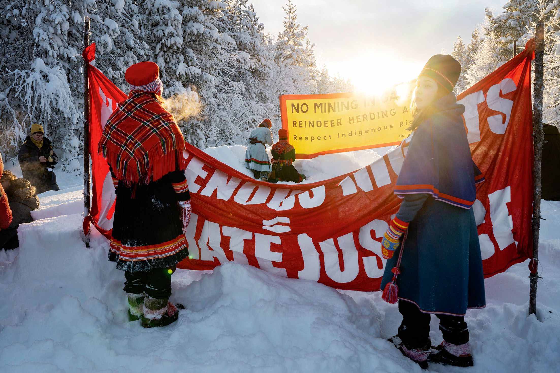 Samiska ungdomsorganisationen Sáminuorra protesterade mot gruvplanerna inför regeringsbeslutet. Foto: Erik Abel