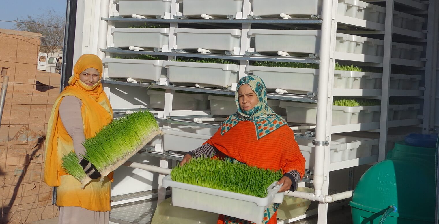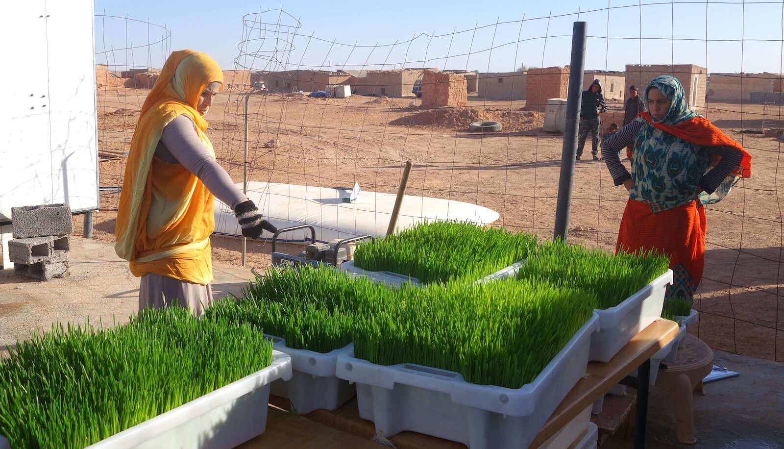 Varje odlingsenhet byggs av lokala material och levererar dagligen upp till 60 kg gräs från kornutsäde. Mat som täcker behovet för drygt 20 boskapsdjur och sju familjer. Projektet riktar sig till de många flyktingar som finns i regionen. Målsättningen är att ge dem de verktyg som krävs för att trygga sin egen självförsörjning och minska beroendet av utländska hjälporganisationer. Tidiga resultat från projektet visar att boskapsdjurens mjölkproduktion mer än dubblerats, färre killingar dör och djuren både växer snabbare och mår bättre.