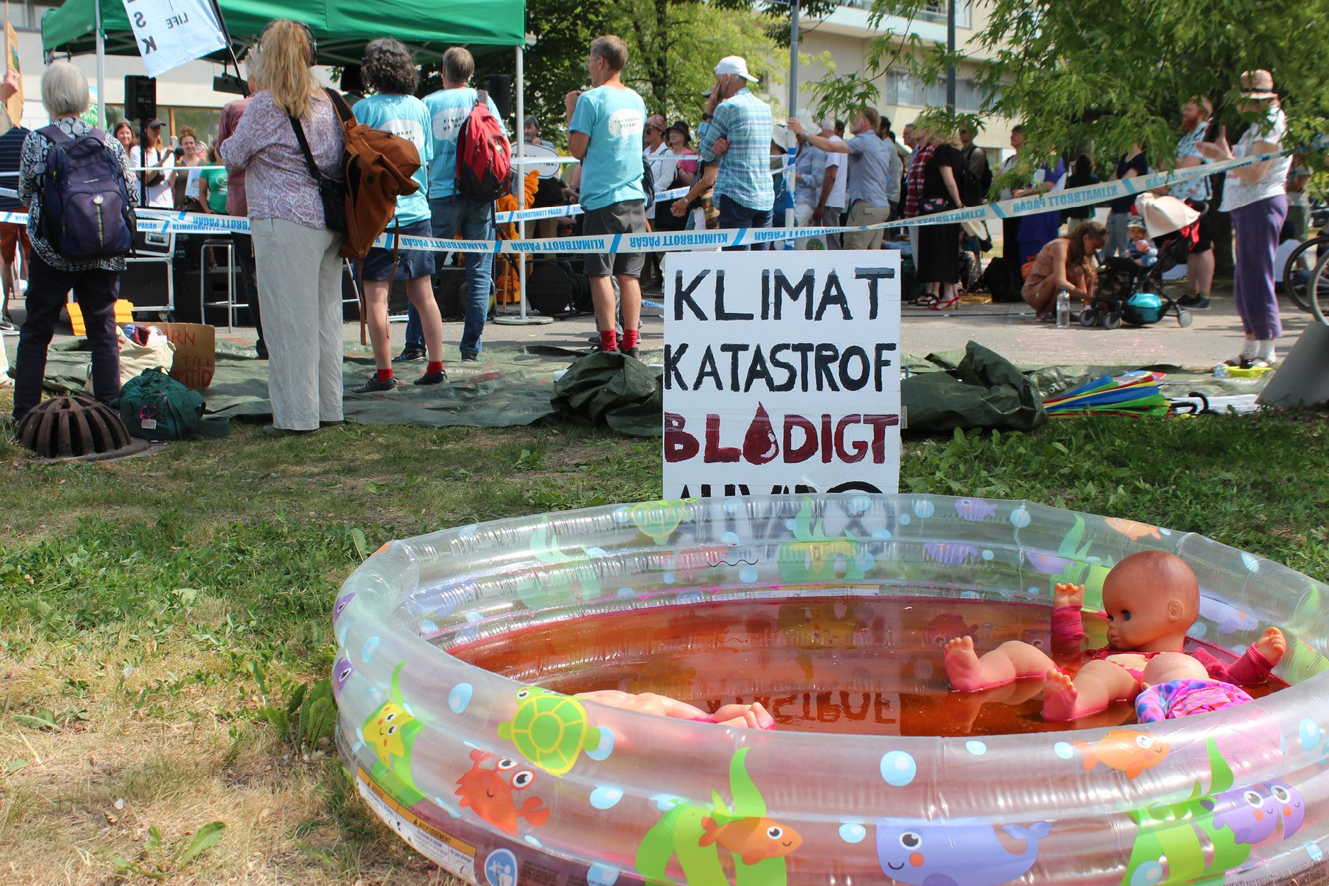 På plats i den 27-gradiga hettan utanför mötet samlades frustrerade aktivister och organisationer för demonstration. Tobias Larsson, ordförande för Fältbiologerna, anser att det är anmärkningsvärt att inga unga fick komma på mötet.