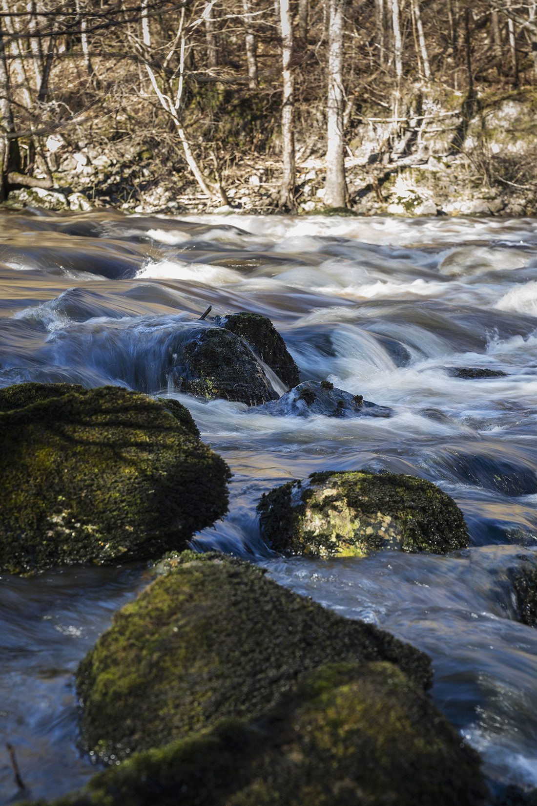 Högt vatten. Nivån har sjunkit något sedan högvattnet i mitten av februari. Vattenkraftsproduktionen har i kombination med alla dikningsföretag skapat ett onaturligt snabbt vattenflöde i älven, som på kort tid kan går från nästan kruttorrt upp till 100 kubikmeter/sek. Något som gör det mycket svårt för växter och djur att anpassa sig.
