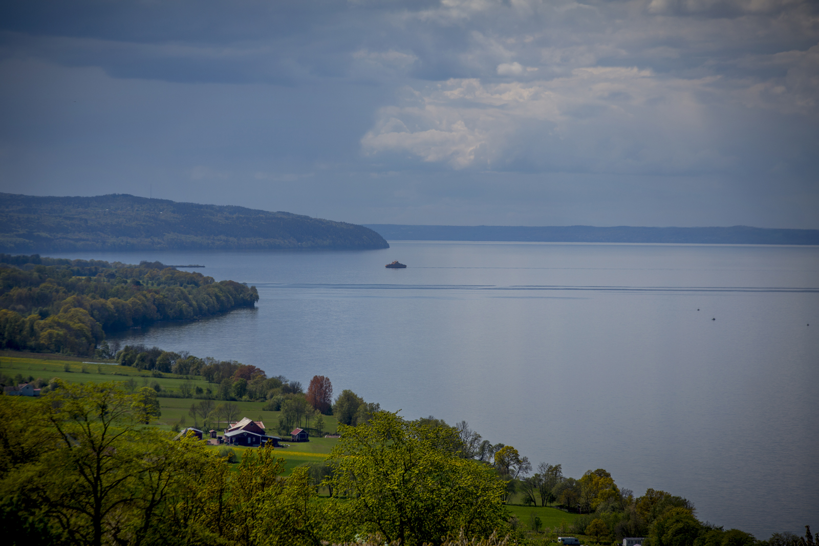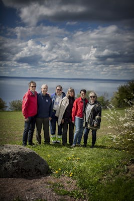 Vi träffar henne och folk från flera lokala miljögrupper (Aktionsgrupp rädda Vättern, Gränna skogsgrupp och Naturskyddsföreningen) runt bordet på en utsiktsplats vid gården Kleven. Solen blänker i sjöns klarblå vatten och man ser hela Visingsö.