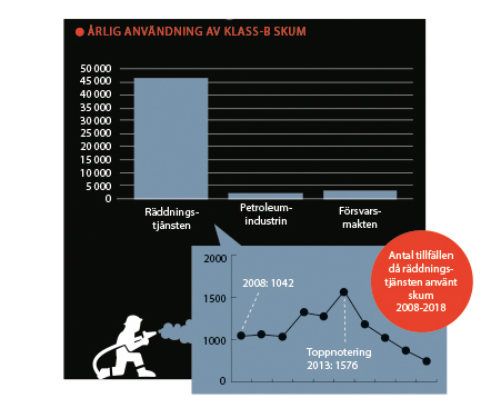 Budskapet verkar ha nått fram, åtminstone i teorin. När vi frågar landets 155 räddningstjänster hur ofta de använder skum svarar i stort sett alla att de är väldigt restriktiva. Men i praktiken varierar användningen mycket mellan olika distrikt, enligt statistik som MSB har sammanställt för Sveriges Natur.