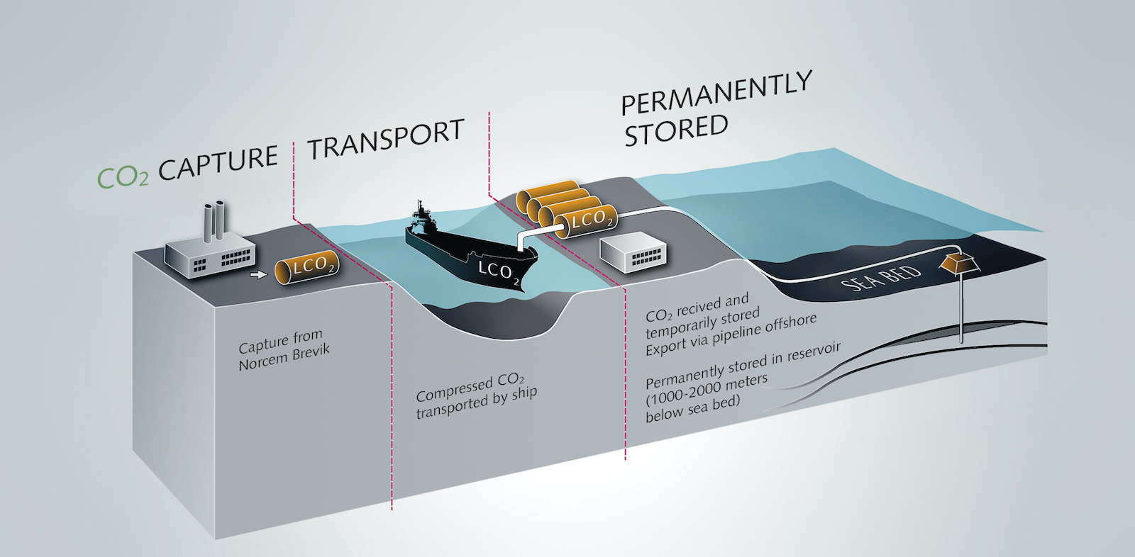 Så ska koldioxidlagringen från den norska cementfabriken gå till. Illustration: Norcem
