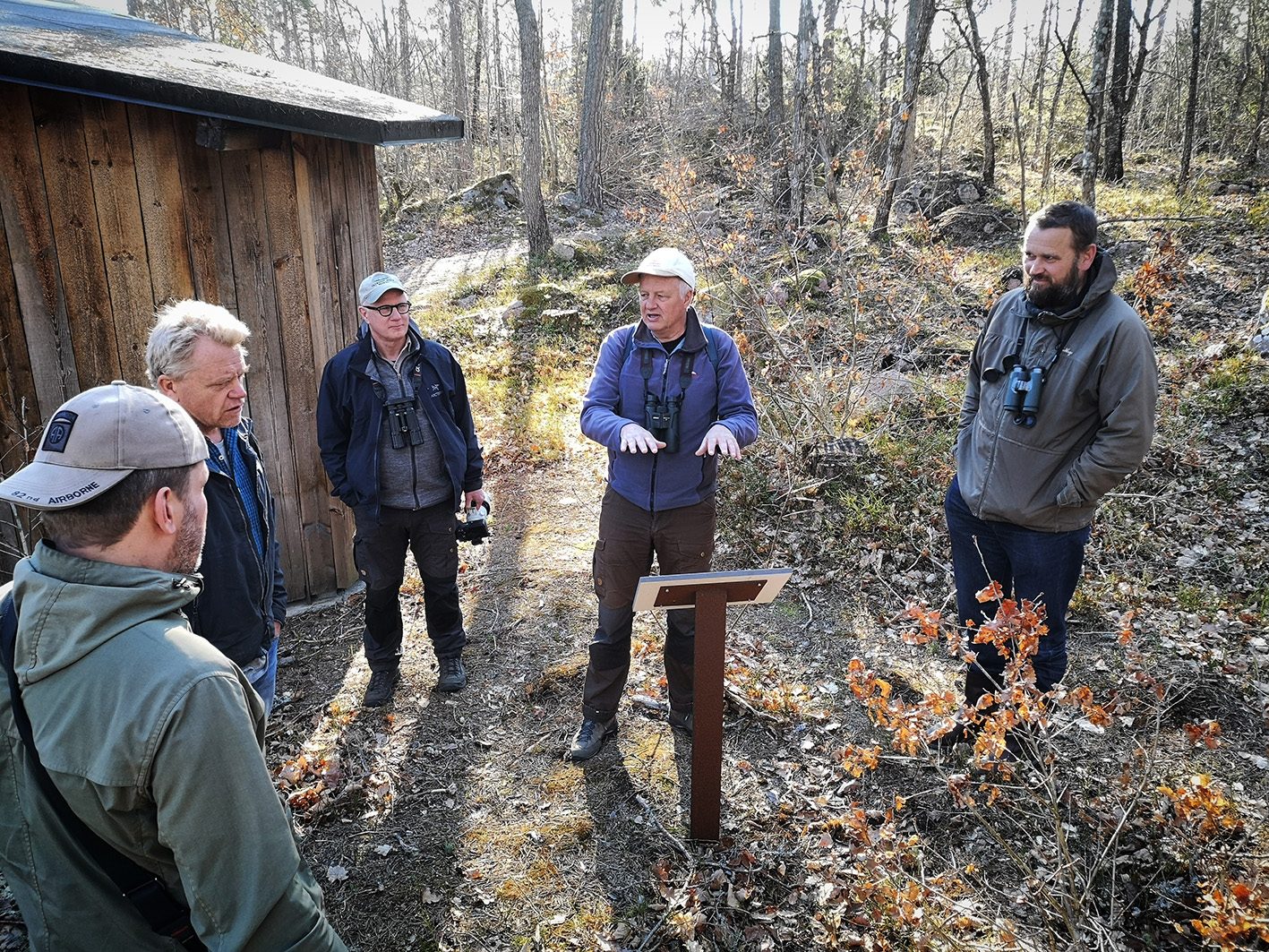 På exkursion vid sjön Allgunnen i ekoparken. Fr v Staffan Müller, Per Jiborn och Carl-Gustaf Thulin. Foto: Mats Hellmark