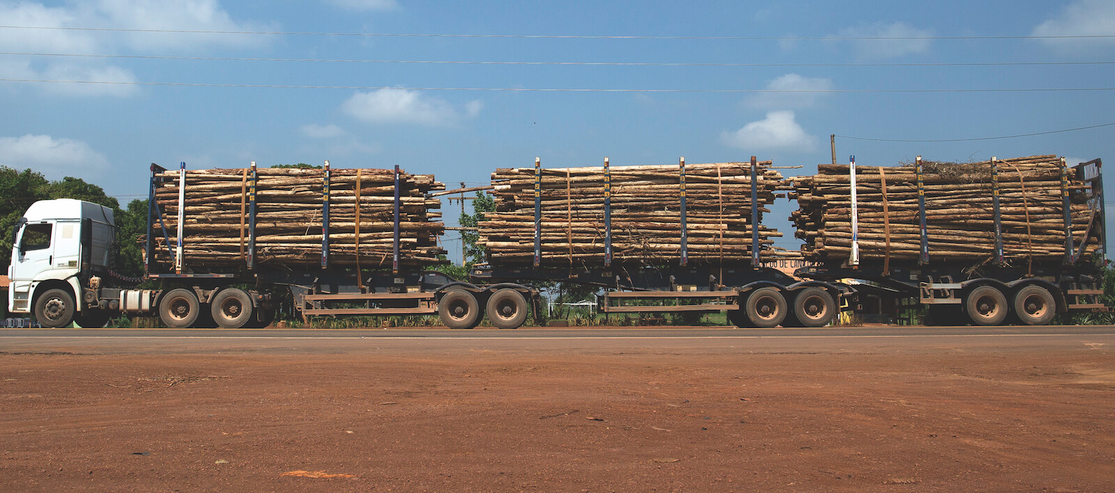 En lastbil fullastad med nyskördad eukalyptus på väg till massabruket i Imperatriz. FOTO: Bruno Kelly