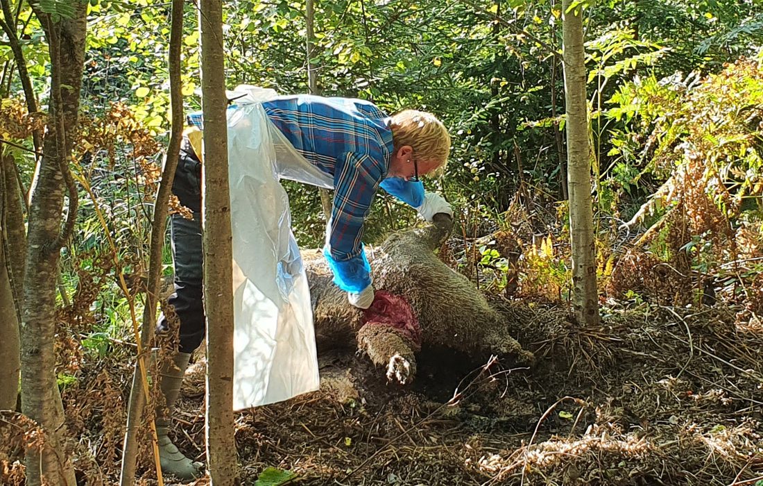Provtagning av dött vildsvin i zonen utanför Fagersta. Foto: Estelle Ågren/SVA.