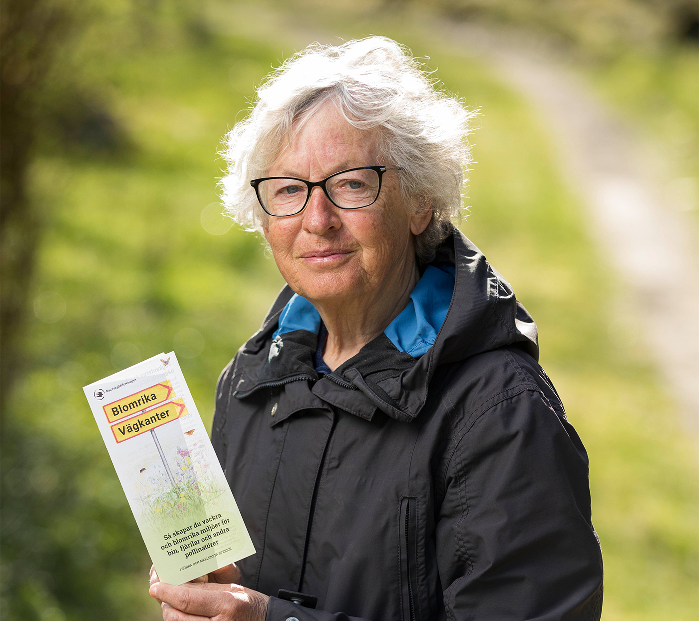 – Blomrika vägkanter och näringsfattiga ängar går ihop eftersom de har med biologisk mångfald att göra, och vi försöker nyttja vägkanterna för att det finns så få slåtterängar, säger Denise Fahlander som är aktiv i länsförbundet och kontaktperson för en lokal ängsgrupp.