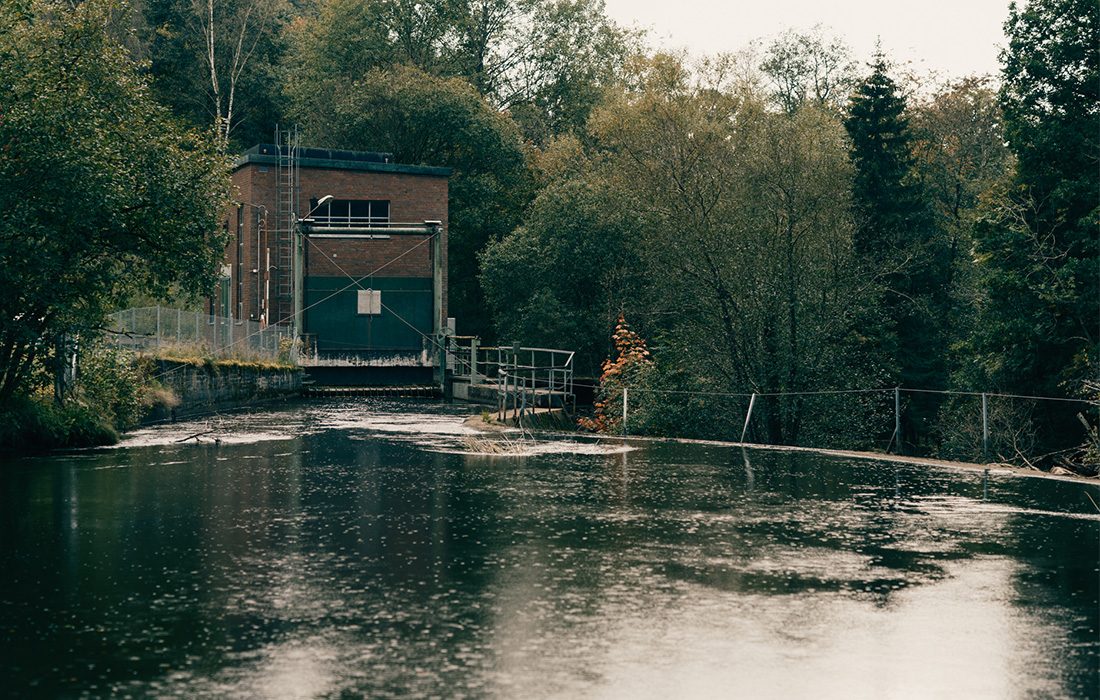 Vid Bosgårdens kraftverk pressas vattenmassorna ned under jorden genom en 600 meter lång betongtunnel under våra fötter. Det är en underjordisk kanal som vi inte ser och som senare rinner ihop med den ursprungliga naturfåran längre nedströms.