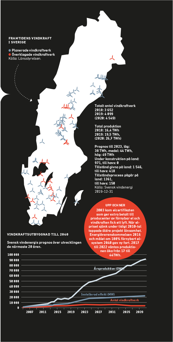 Sverige bygger ut vindkraften i rasande takt. Från 2013 till 2019 fördubblades produktionen av vindenergi. Till 2022 beräknas den dubblas igen. Per capita expanderar vi mer än något annat land, undantaget Norge, och planen är att det ska fortsätta till 2040, då hela landets energiförsörjning ska vara förnyelsebar. Men utvecklingen möter också kritik. Allt fler lokalbor oroar sig för konsekvenserna av vindkraftverken och deras protester stoppar många projekt. Branschföreträdare räknar med att bara en fjärdedel av alla ansökningar får tillstånd och en tredjedel av godkända planer blir verklighet. Processerna tar år och kostar på för samtliga inblandade. De flesta är överens om att systemet måste ändras. Men hur?