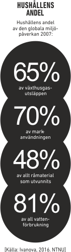GRAFIK * VI SKYLLER gärna på stater och industrier, men faktum är att cirka tre fjärdedelar av den globala miljöpåverkan kom-mer från hushållens egen konsumtion. Detta enligt en ny studie från universitetet i Trondheim.