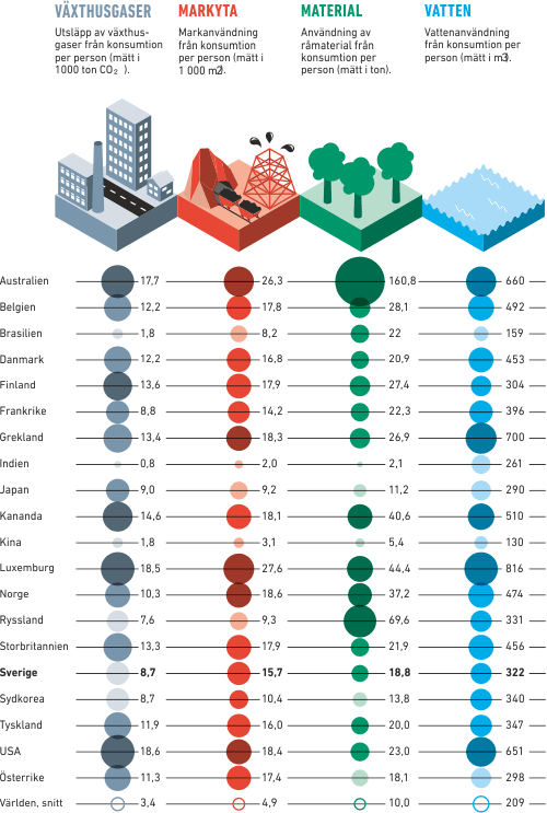Ju rikare land, desto mer konsumerar invånarna, i synnerhet mat. Kina producerar stora delar av våra konsumtionsvaror men landets egna resursförbrukning är per person långt under det globala medelnivån.