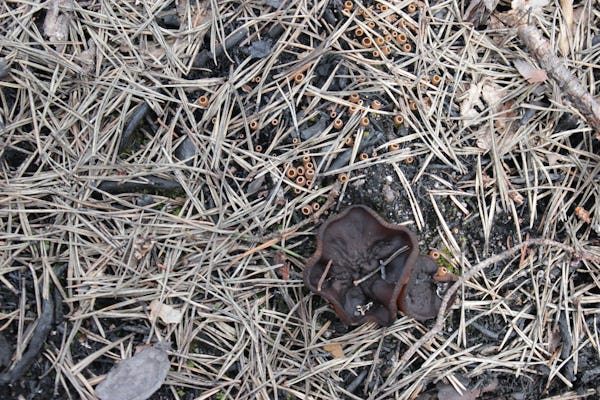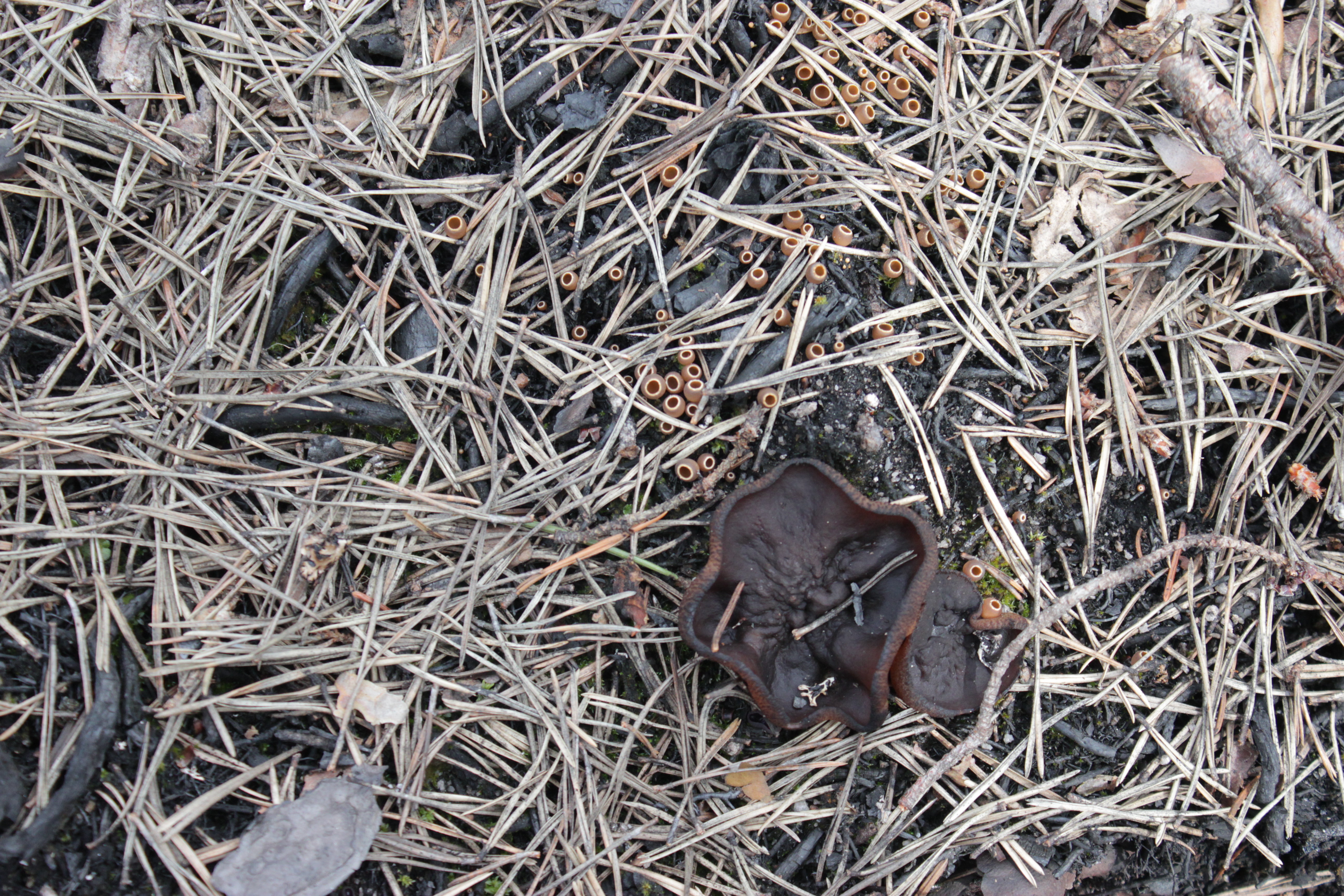 ETT KNAPPT HUNDRATAL arter är beroende av brand för sin fortlevnad. Ett par av dem har redan börjat dyka upp i brandområdet. Till exempel finns den annars mycket sällsynta svampen stybbskål redan i riklig mängd. Vi hittar också en art av svedjeskål, en lite större skålsvamp, som före branden aldrig tidigare hittats inom länet.
