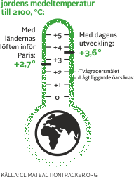 I december samlas världens ledare i Paris för FN:s 21:a klimatmöte. Efter tidigare misslyckanden har toppmötet beskri-vits som en ”sista chans” att begränsa planetens temperaturökning till max två grader. Mer än så är oacceptabelt, har världssamfundet bestämt. De förslag om åtaganden som världens länder lämnat in till förhandlingarna talar dock för en ökning på i medeltal 2,7 grader till 2100.