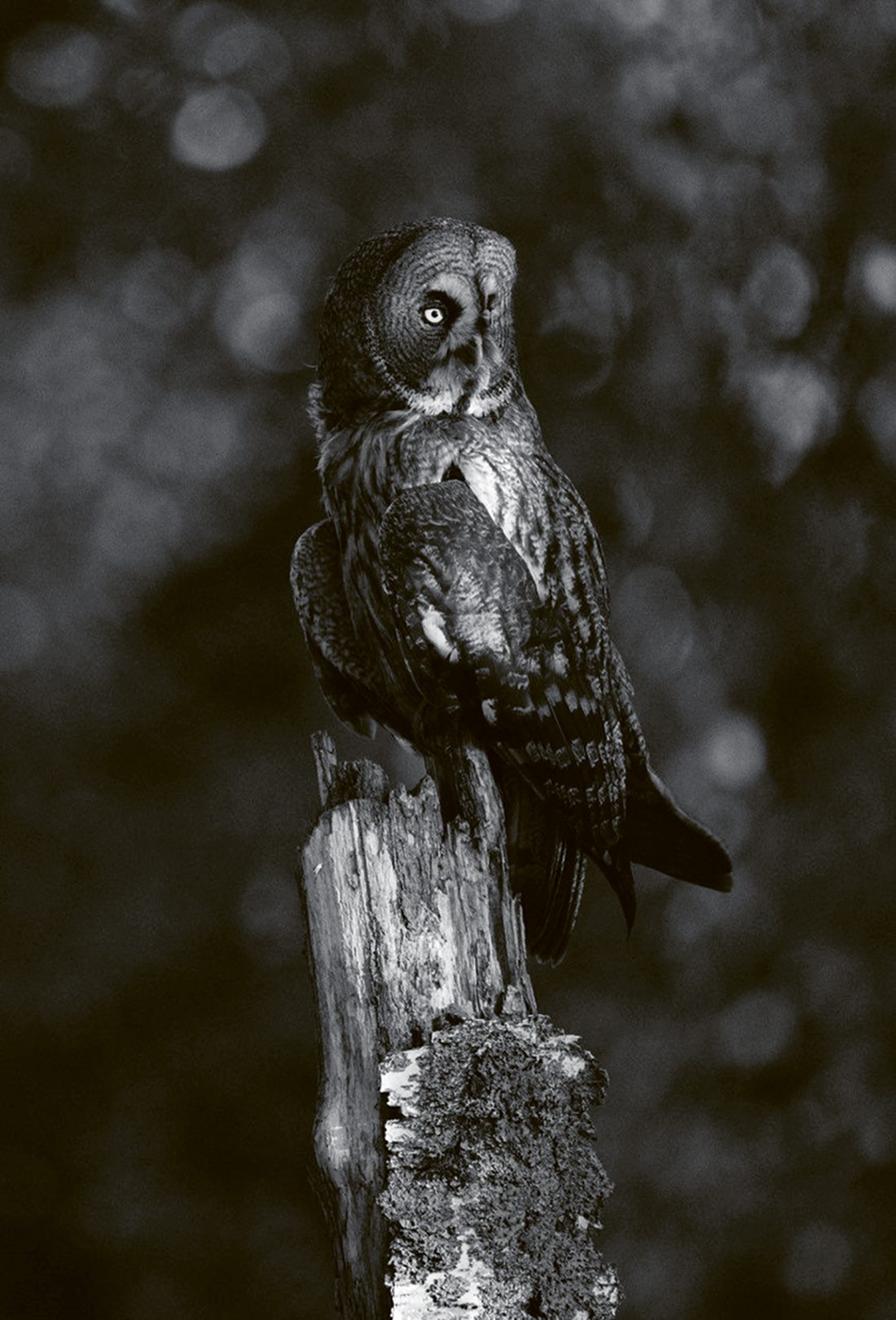 En lappuggla i Norduppland i slutet av juli 2024. Det var vindstilla och på håll kunde ugglans ungar höras pipa i boet en bit bort. Plötsligt satt den bara där, till synes utan att ta notis om mig, minns Micke Bergman.