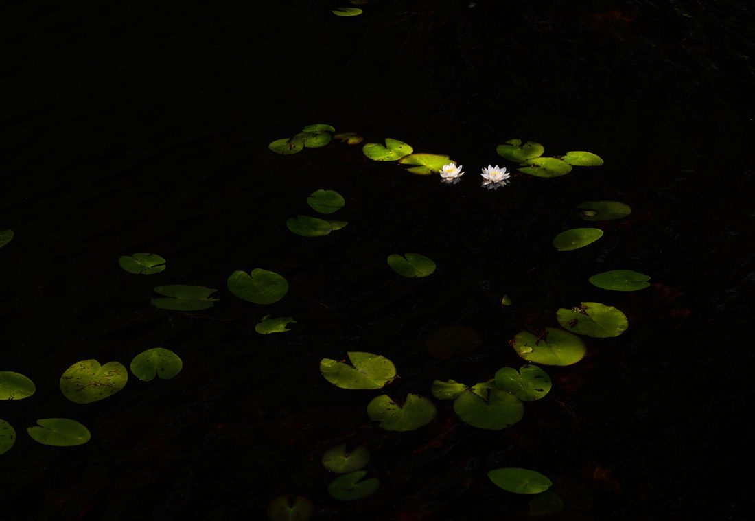 Vita näckrosor en varm sommardag vid Forsmarks bruk, de sista dagarna av juni 2024. ”I skuggan av de stora träden vid en liten bro strilade solen ner genom grenverket på näckrosorna som med sina blad bildade ett hjärta”, säger Eva Sjöberg.