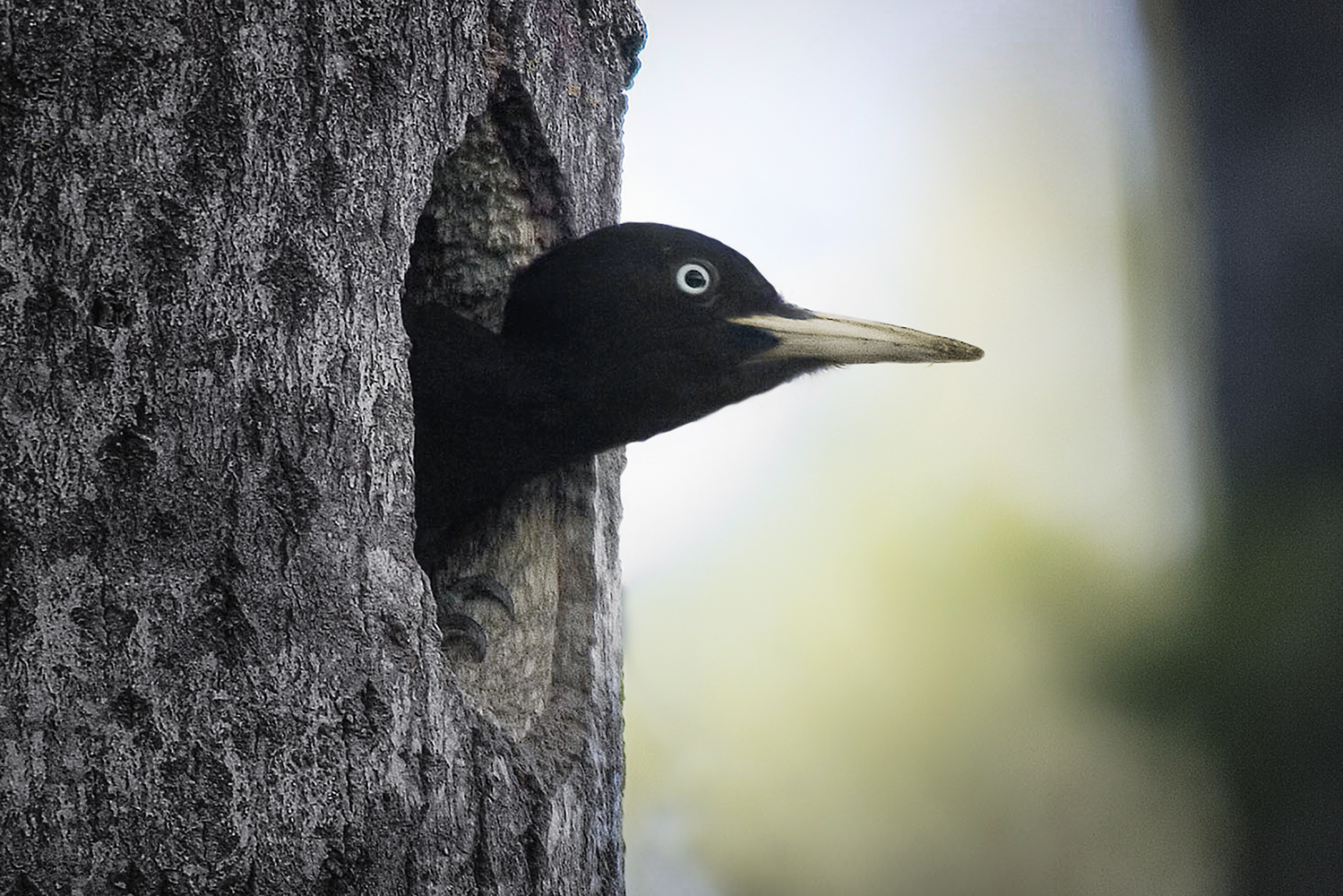 Spillkråkan är vår största hackspett, stor som en kråka och den enda med mörk fjäderdräkt. Den behöver skogar med högre naturvärden och är en av arterna som minskar.