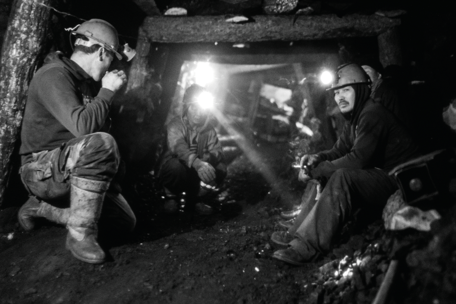 Gruvarbetare i en illegal gruva i Nalaich. Farligt och tungt arbete, dålig ventilation och stor rasrisk.
