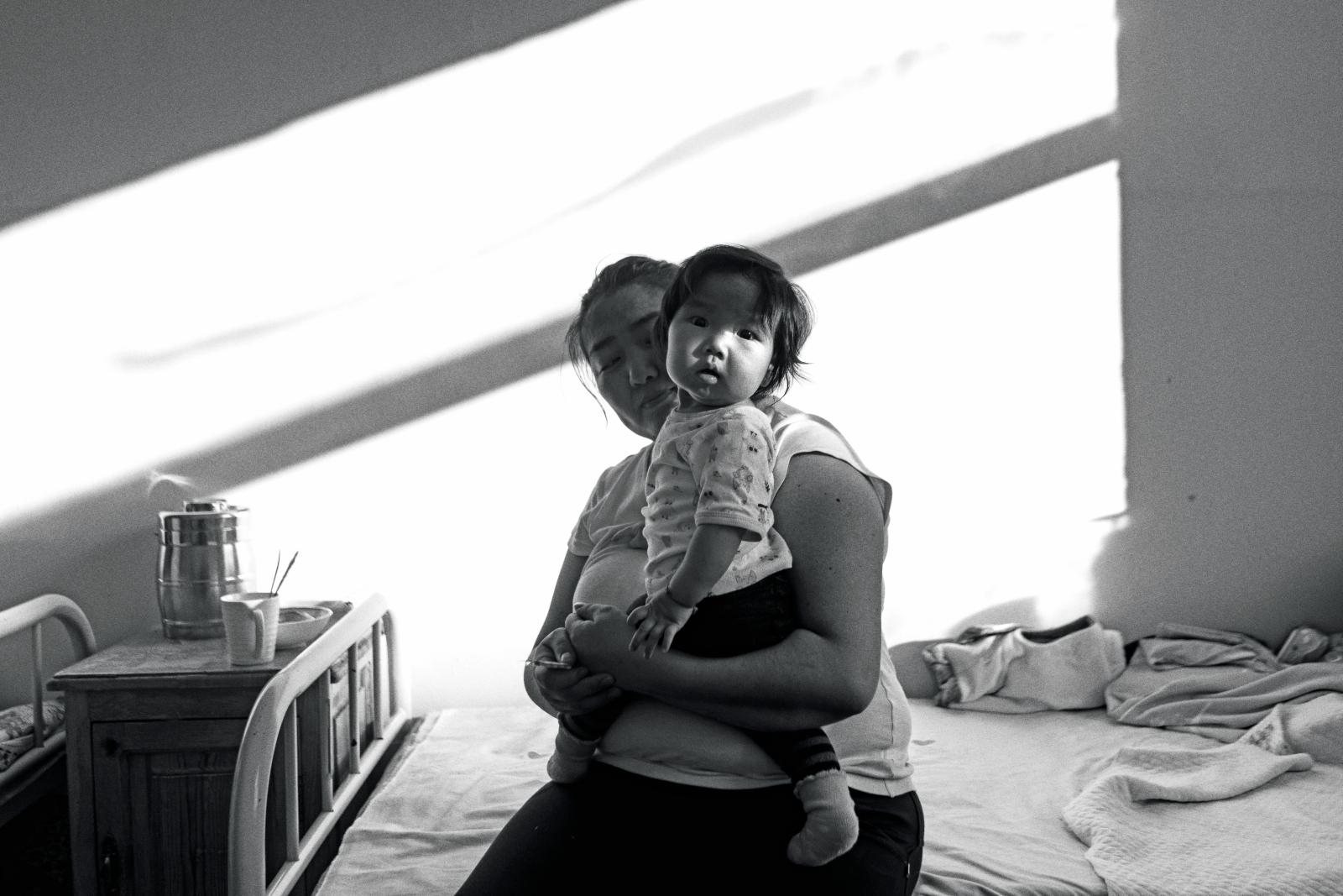Mor och dotter i sjukhuset Songinochairchan i Ulan Bator. Under vintermånaderna kommer många små barn in med andningssvårigheter.
