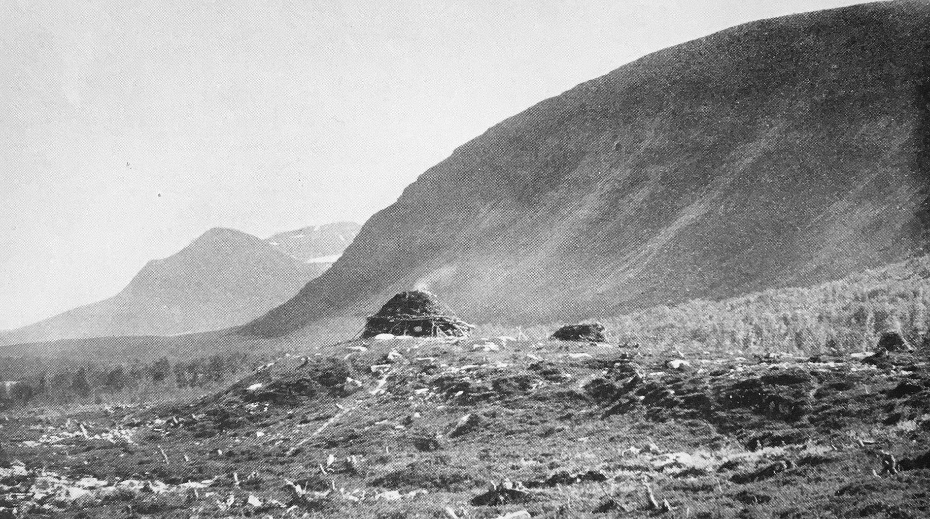 Samma vy som bilden ovan fast tagen 1941, när dammen höll på att byggas. Innan var detta en labyrint av sjöar och vattendrag, likt det landskap som finns i Sareks nationalpark. Foto: Ernst Manker, Nordiska museet.