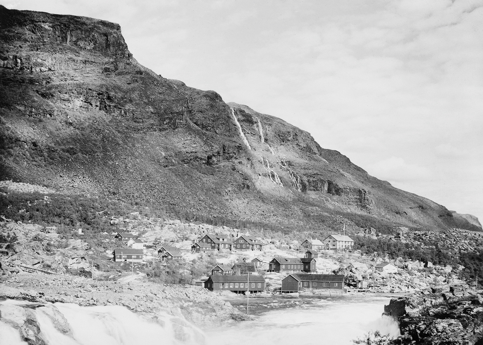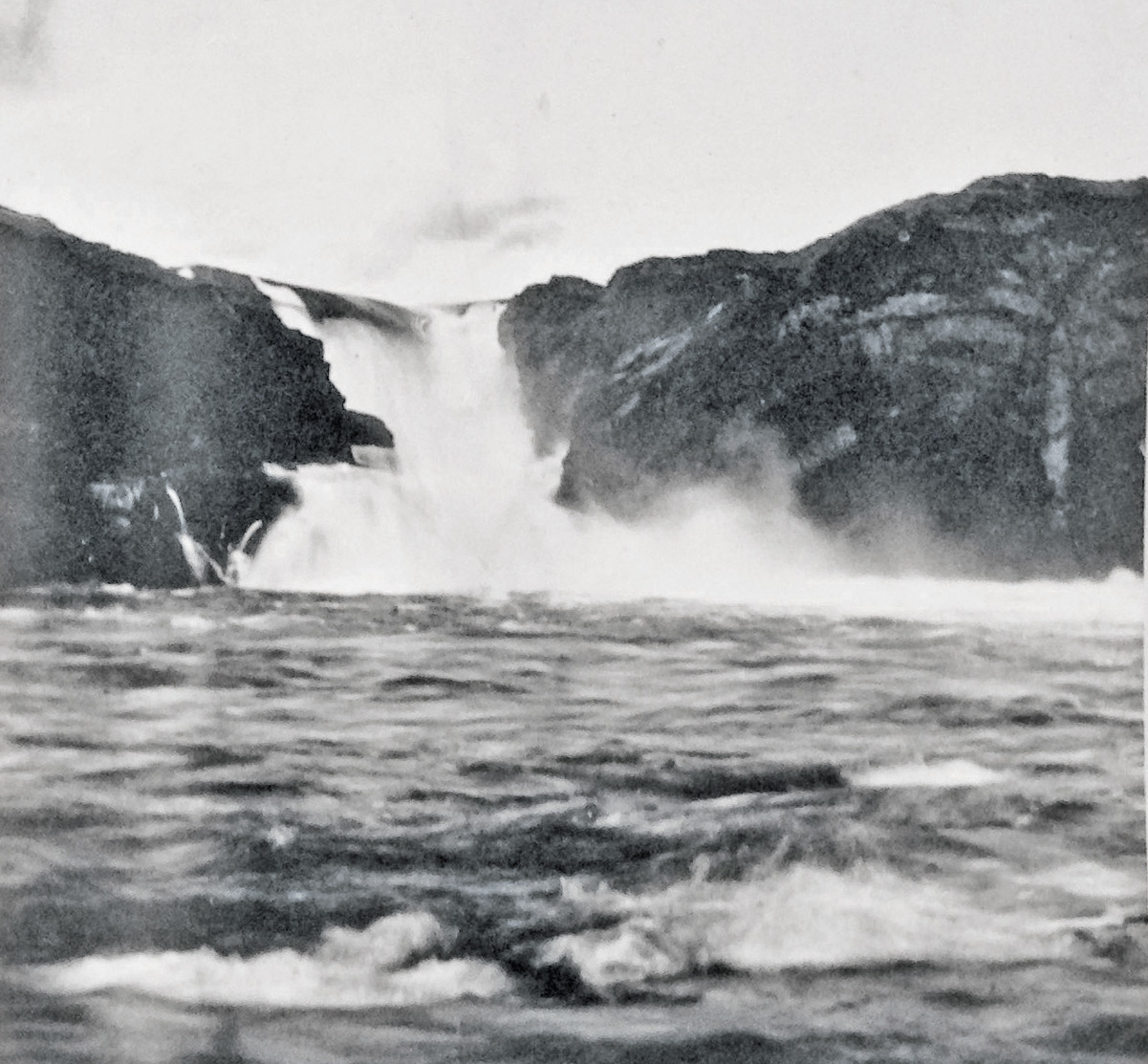 Stora Sjöfallet/Stor Muorkke 1868. Nationalparken rymde ett av Europas mest magnifika vattenfall när den invigdes 1909, men tio år senare beslutade riksdagen att använda fallet till vattenkraft. Foto: Lotten von Düben, Nordiska museet.