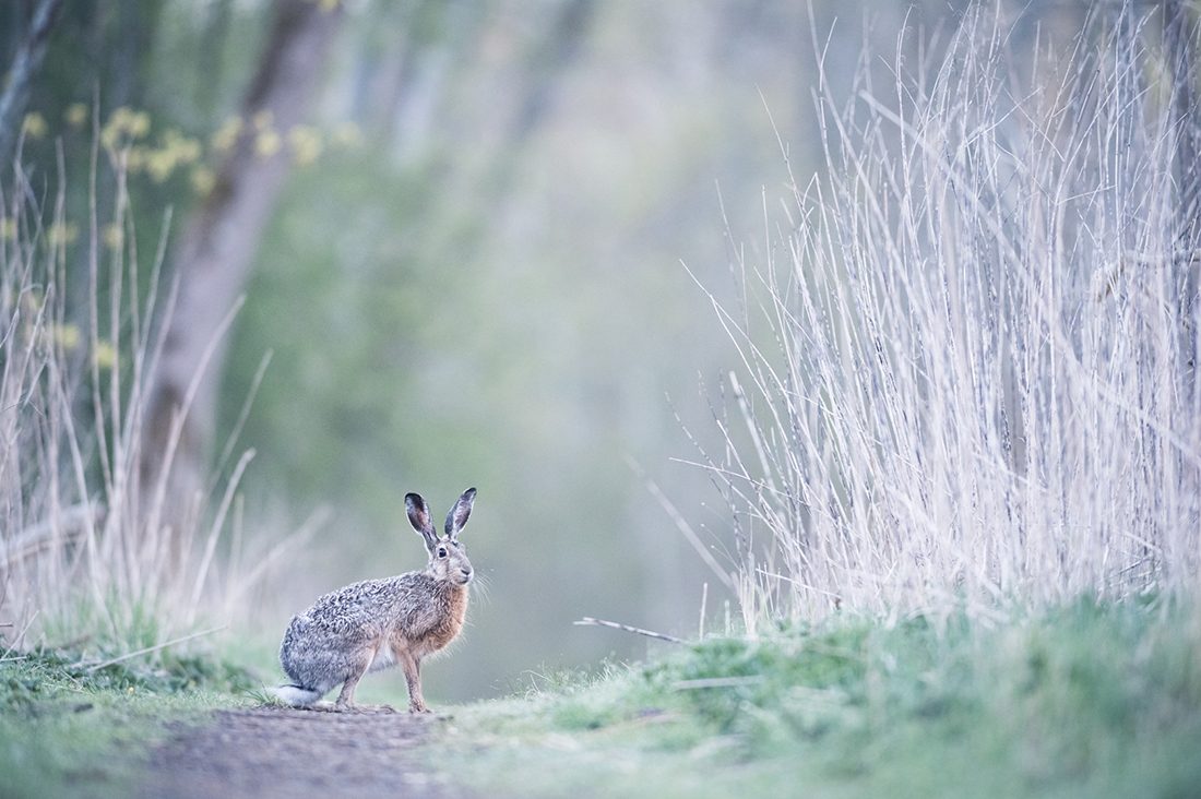Fälthare. Att ligga på mage i ett dike och vänta i flera timmar kan vara värt besväret. Harar är lättare att få bild på om man håller riktigt låg profil.
