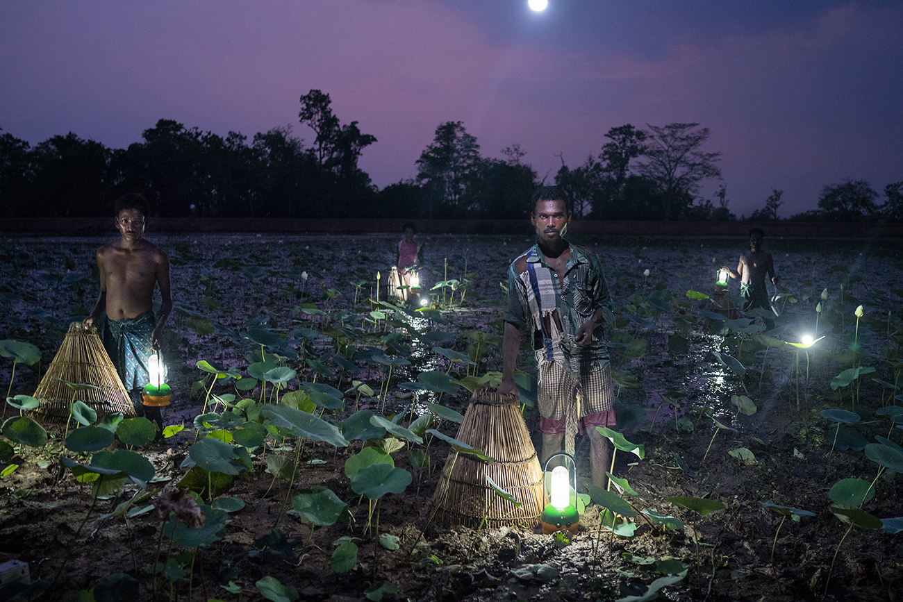 BILDEN OVAN: I Odisha fångar byborna fisk med hjälp av solcellsdrivna lampor. Mindre än hälften av den indiska delstatens 42 miljoner invånare är anslutna till elnätet. Den här bilden är tagen med solcellslampor som enda ljuskälla.