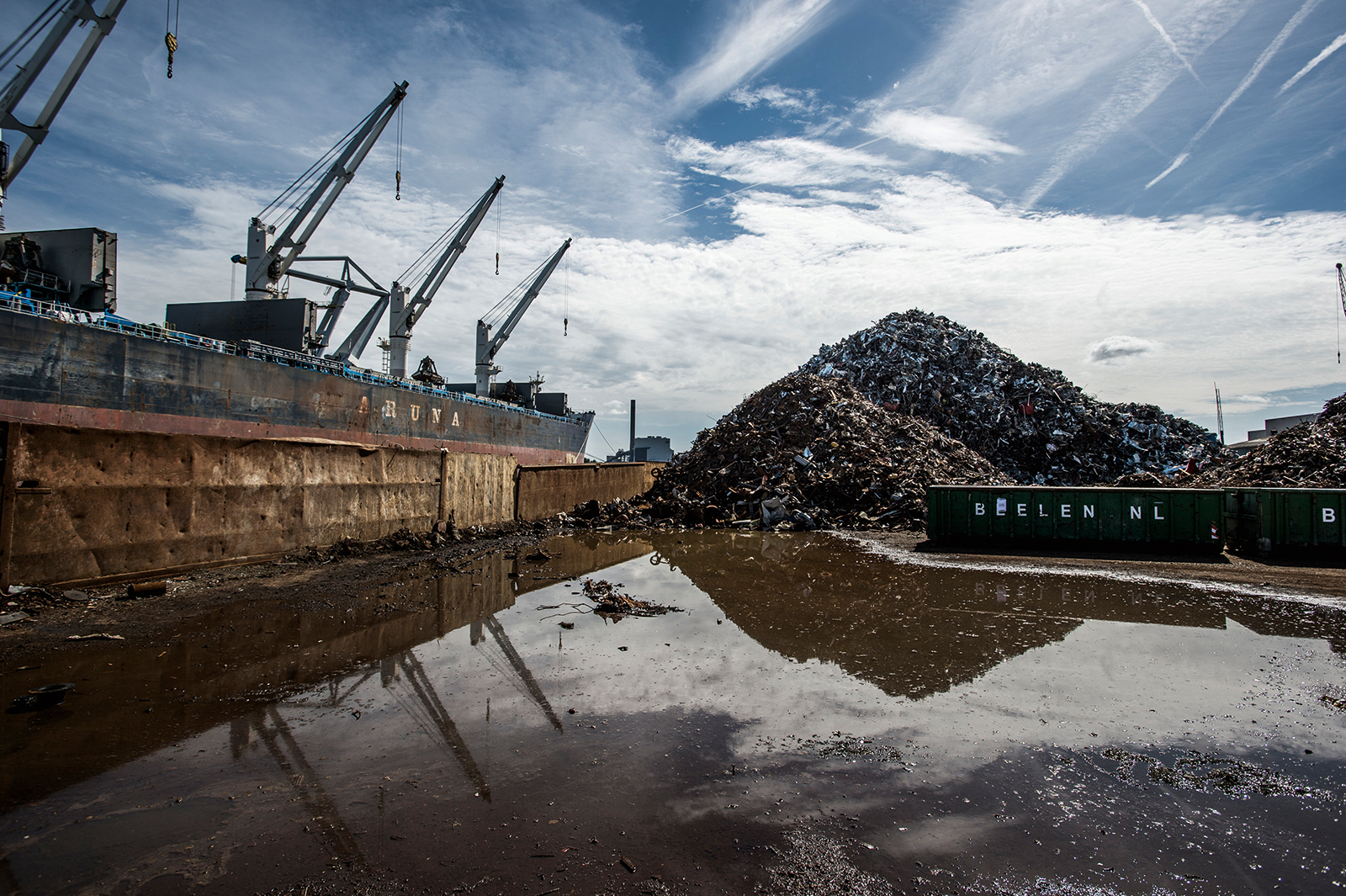 EU-EXPORT Ett fartyg i Amsterdam lastas med metallskräp som ska skeppas till Turkiet för återvinning.