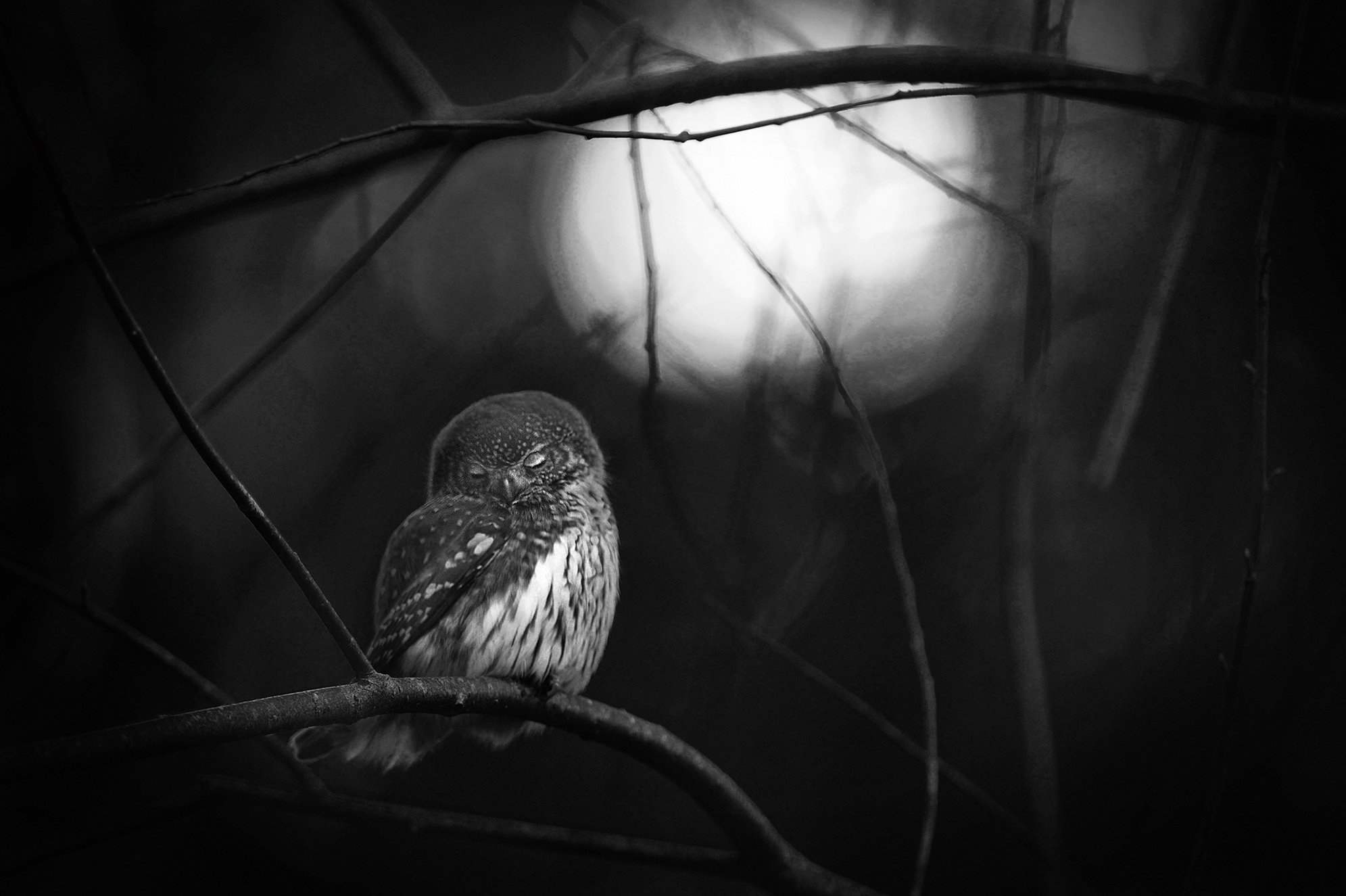 Sparvuggla, Småland. Moonlight Requiem, som bilden döpts till på engelska, vann BBC Wildlife Photographer of the Year 2016. ”Bilden visar både mina känslor och kanske något som ugglan känner. Tillsammans blev det väldigt starkt.”